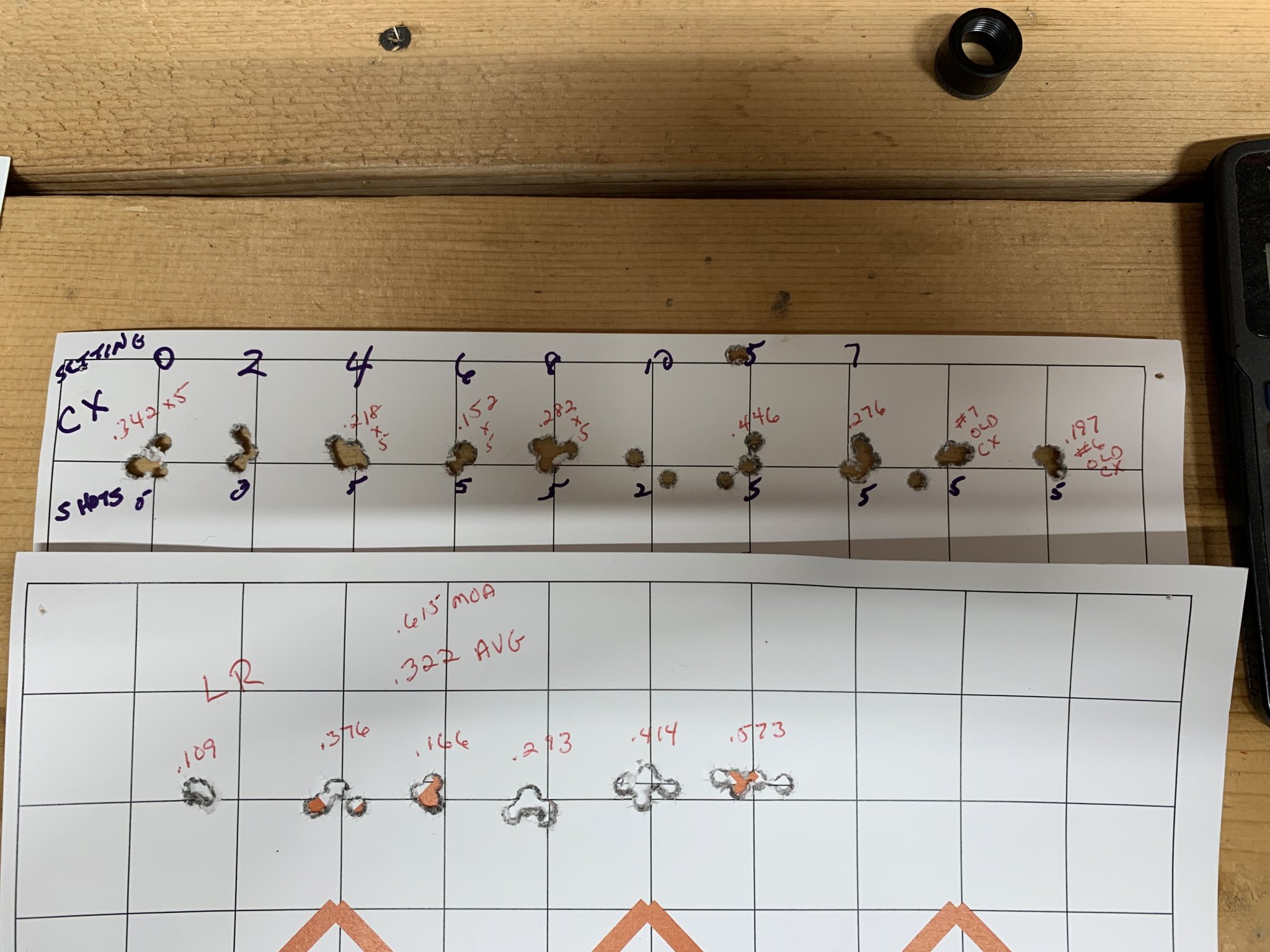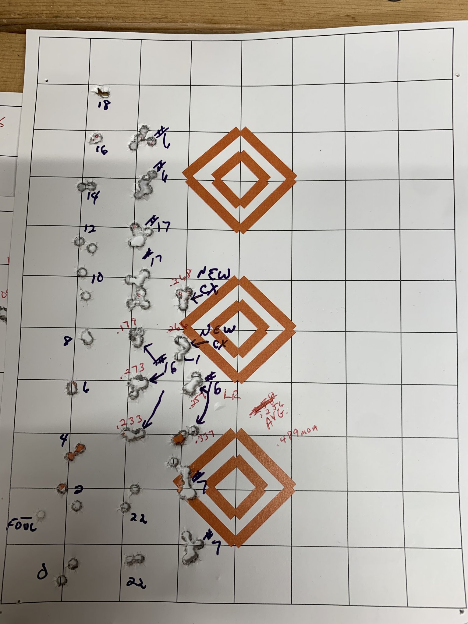 The brick of SK LR has an ES of approximately 20-35fps depending on the day I shot. First 20 - 5 shot groups averaged .436. Didn’t make much sense to me, good ES, but the gun didn’t like it. Speed range possibly? Have a ATS tuner for a big bore gun, managed to thread it on a plastic thread protector my son had laying around and screwed it on the Vudoo.