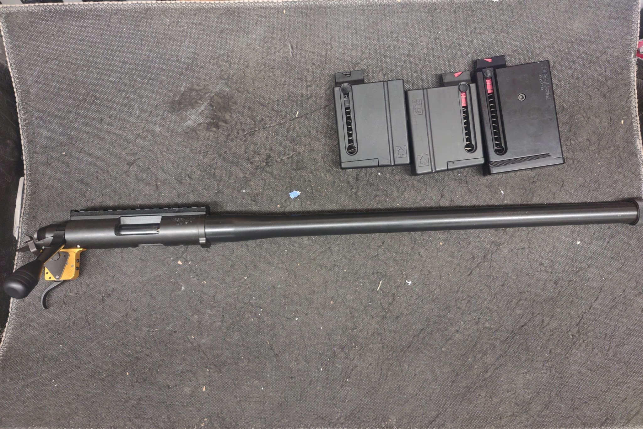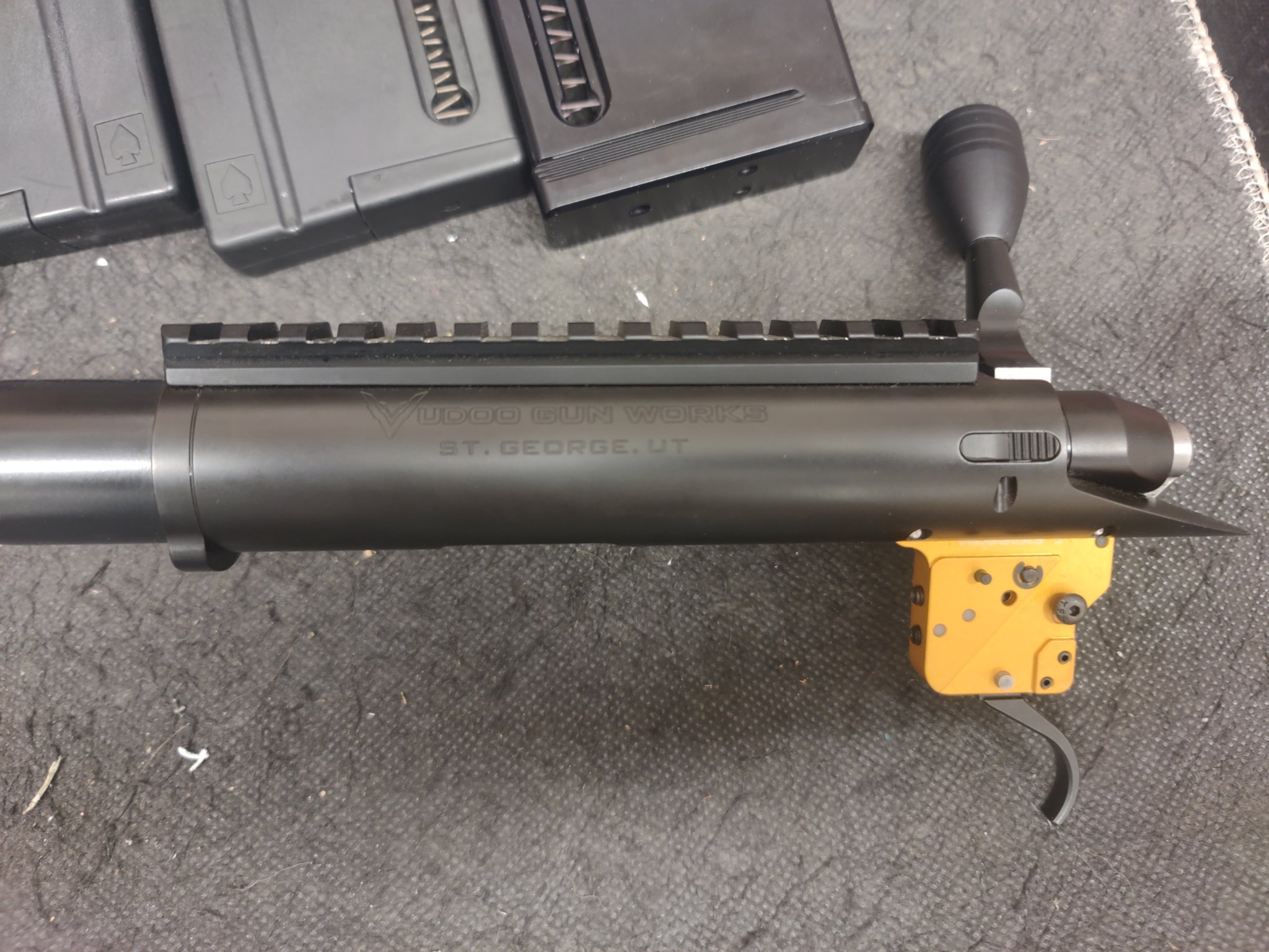 Nice Used Vudoo V22 Gen 1 with 20" Kukri Barrel Threaded 1/2x28 Comes with Timney Elite Trigger and 3 Vudoo Mags 1 12rd Alum and 2 10rd Poly .....Gun has somewhere around 2k rounds on it and has shot everything I've put in it Very well (Mostly SK Variants as well as Lapua) Been Shooting Sk BiAthlon through it and 50yd 5 shot groups in same hole and 100yd ground around 3/4" when no wind .......Shot a few rimfire matches this year with in and just decided to concentrate on CF for the time being only reason I'm selling .........Everything Pictured for 1550 Shipped or would pull the trigger off and go 1450 Shipped FFL to FFL ........Would Possibly Trade on Leupold Mark 4/5 with PR2 Mil or possibly Foundation Stock for TL3 Action with cash either way to make fair deal