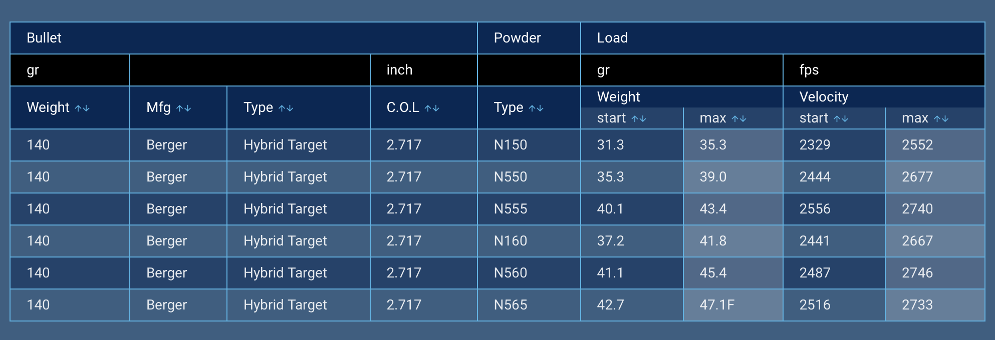 RL 16 has priced it's self out of my limited income. So I'm looking for an something to take it's place in my 6 & 6.5 CM's . The only data other that that published by VVN , is by Lyman, and they only list VVN 550.