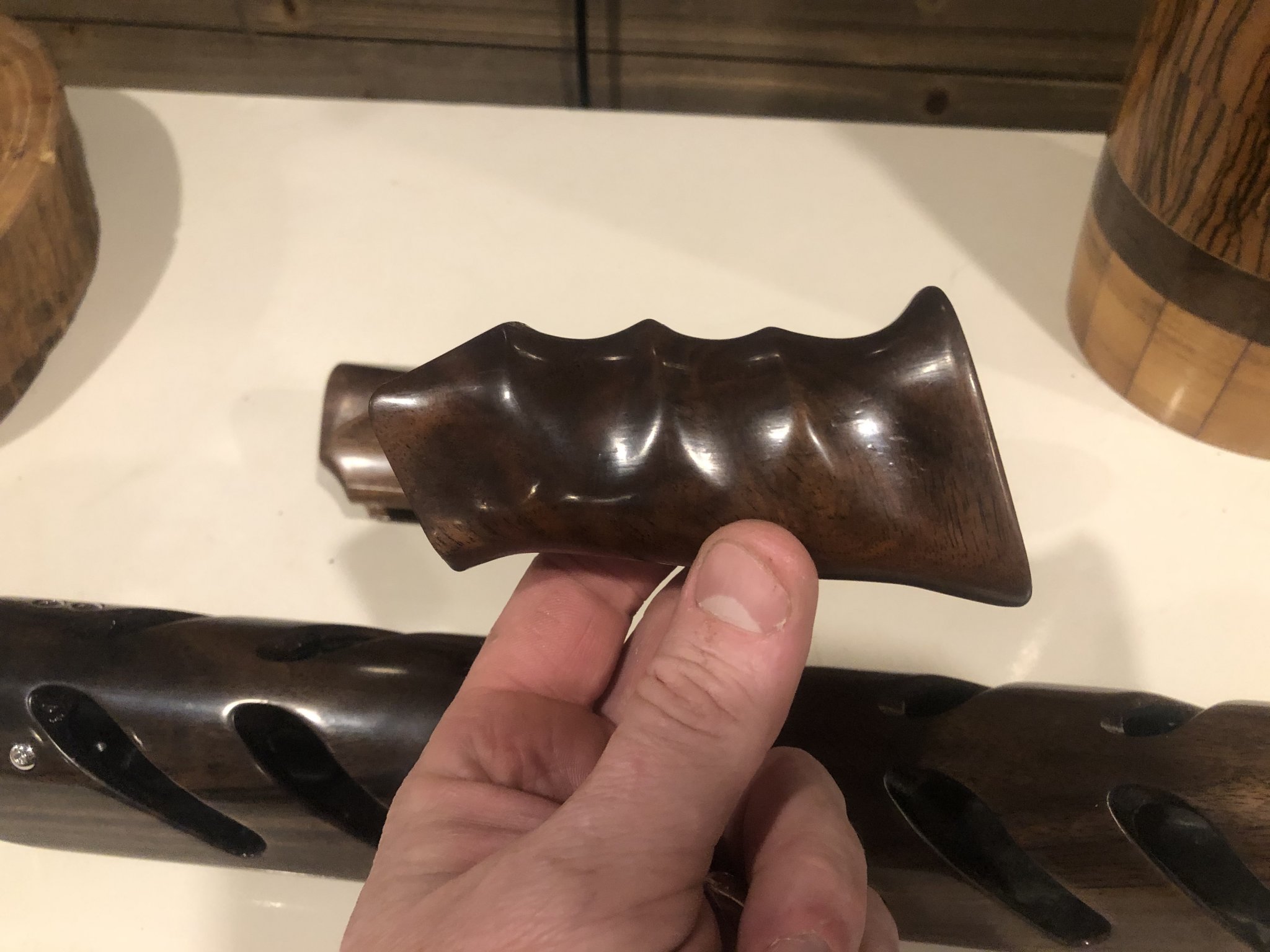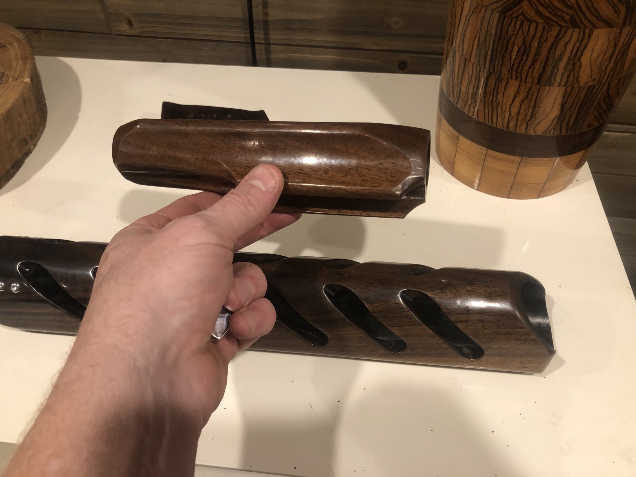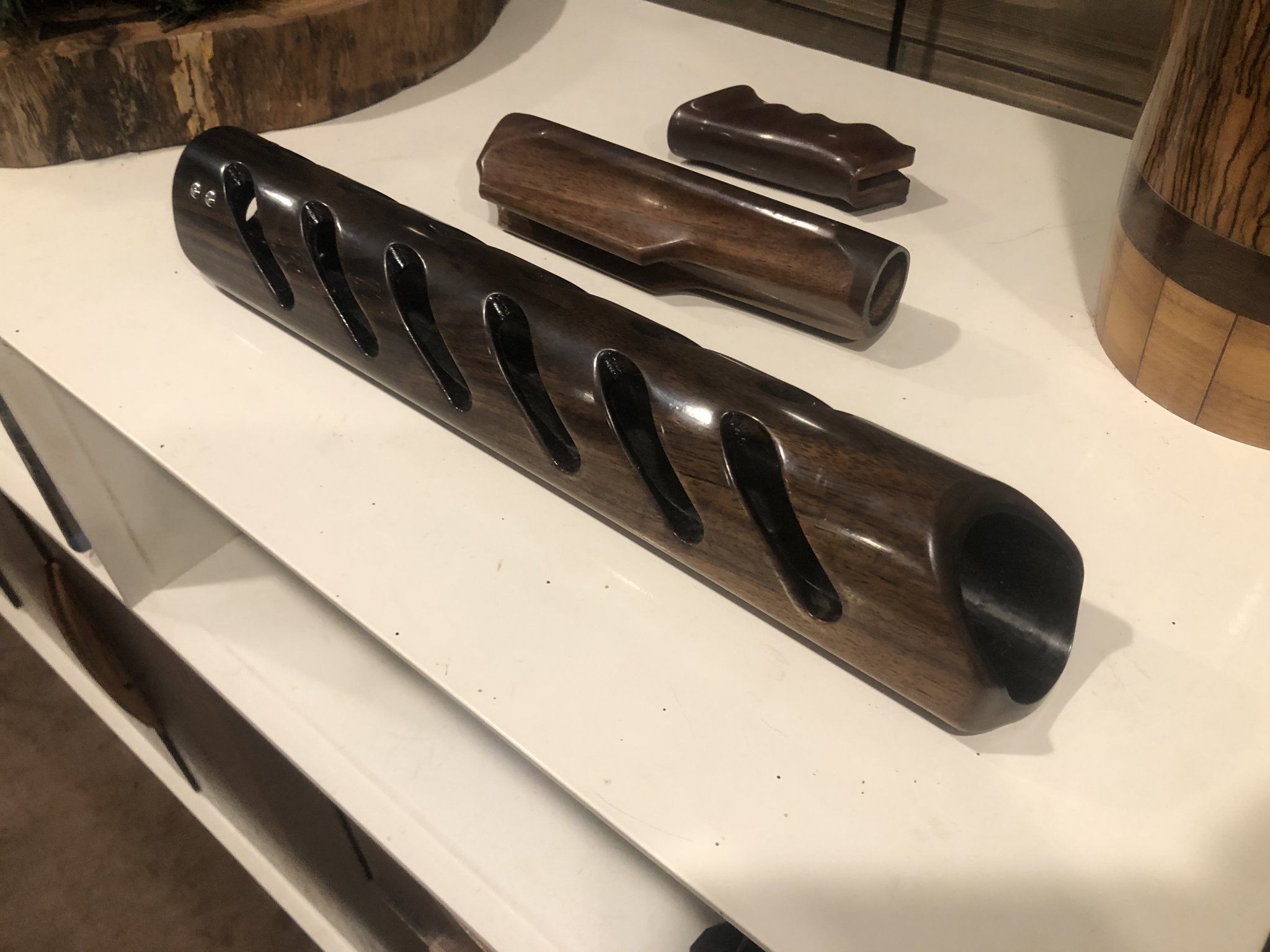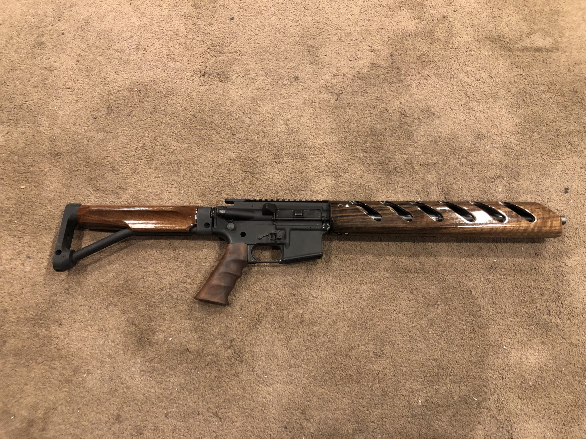 I built this set for a guy that wanted a set made as a gift to his father from a fallen walnut tree on his property. He will be actually building the rifle. As it sits the parts are just displayed on some of my AR parts. The barrel in the photo is 16” just for reference. They are fairly light weight. The core of the hand guard is 3mm carbon fiber. It’s strong..