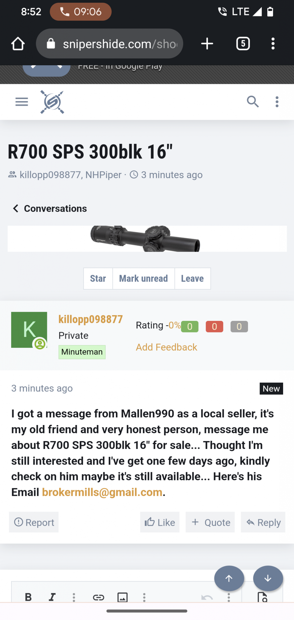 Guy sent me this message on an old WTB add I had up. Buyers beware. Joined 27 min before sending me this message.