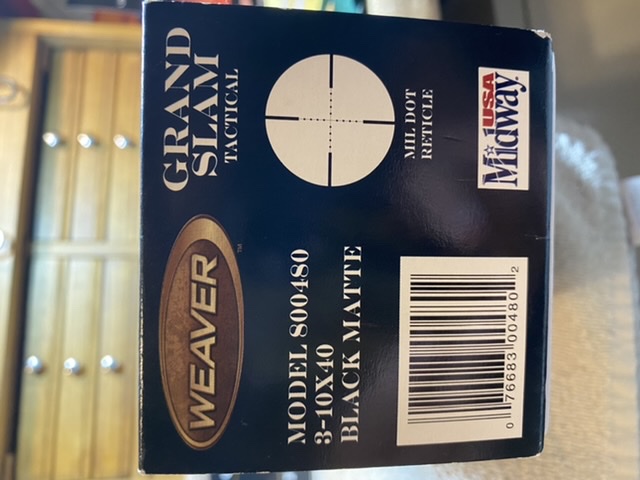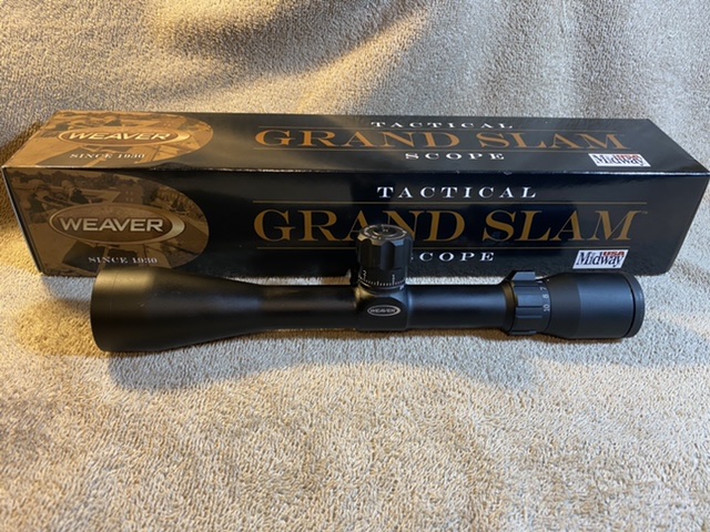 Weaver Tactical Grand Slam Rifle Scope 3-10x40mm 1/10 Mil Adjustments Mil-Dot Reticle Matte. The scope is in excellent condition with no visable ring marks. This scope is made in Japan. $235.00 shipped.