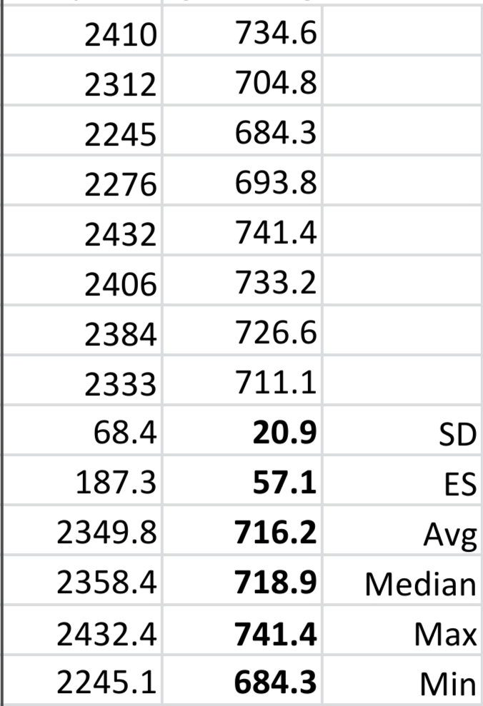 The samples are too small to draw major conclusions but some things became apparent. Both Pandemic era Lot #s had velocities pushing the 2350 fps range! Those are the Blue line (Hornady) and the Orange (CCI). The new post pandemic brick from Hornady (Grey line) came close but did not exceed 3000 FPS, and did so only once.