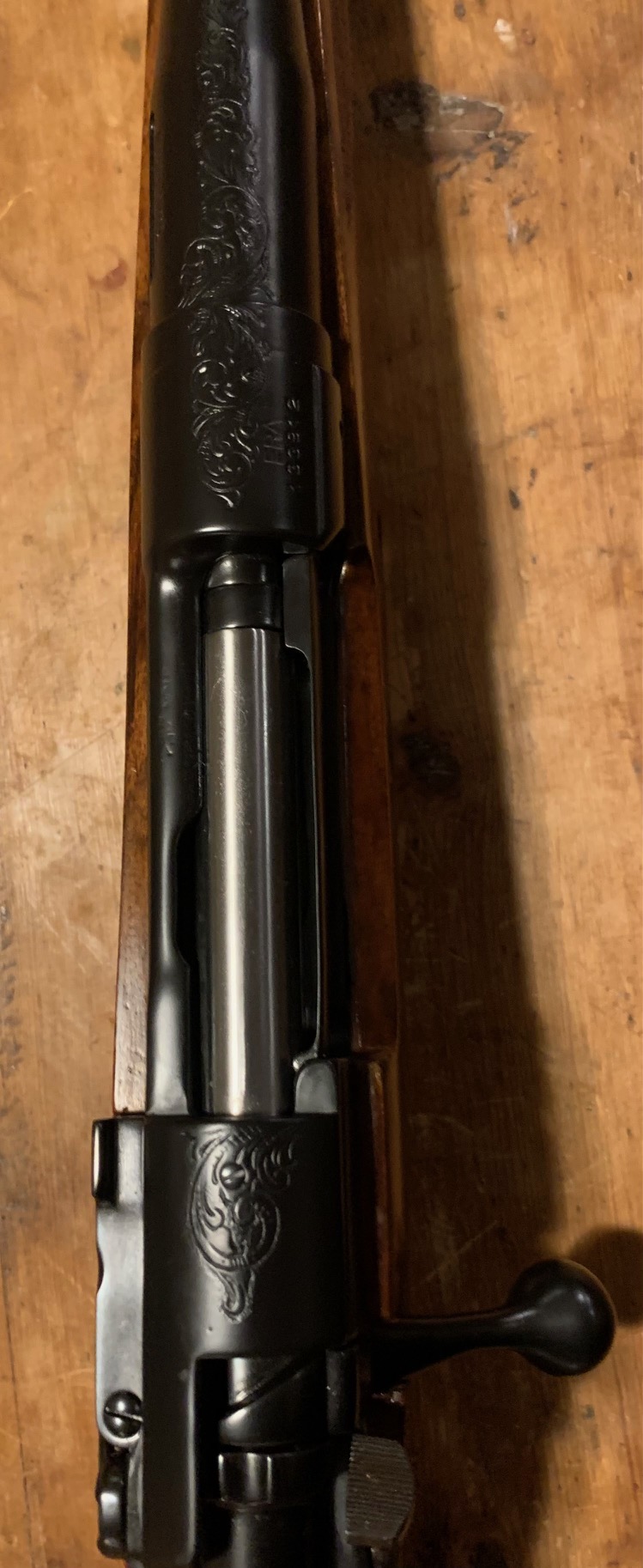 Some mild engraving on the action top. Done by John Adams of Vershire, Vt. A master and a good friend. I try to always have 'something' in with him. Right now my 10mm.