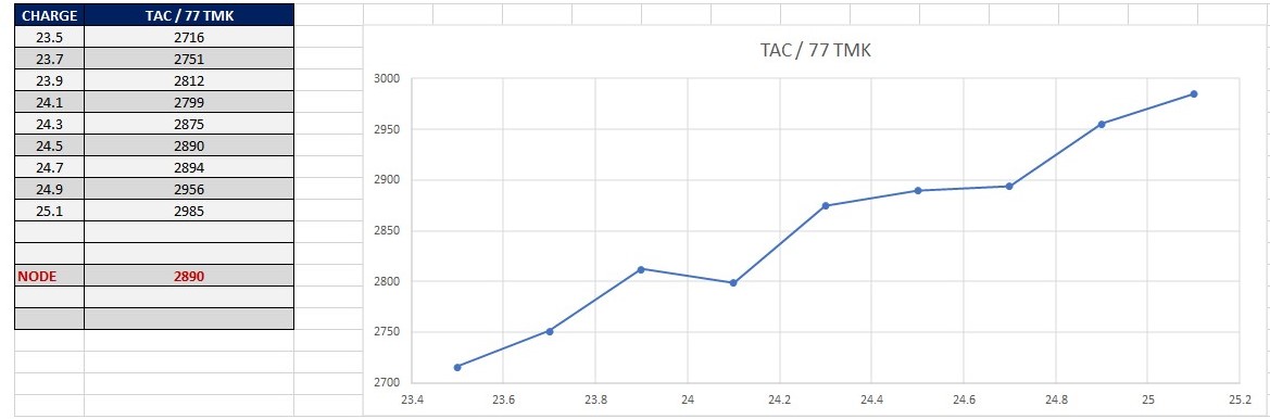 Me looking at it it looks like between 24.3-24.7gr is the sweet spot?