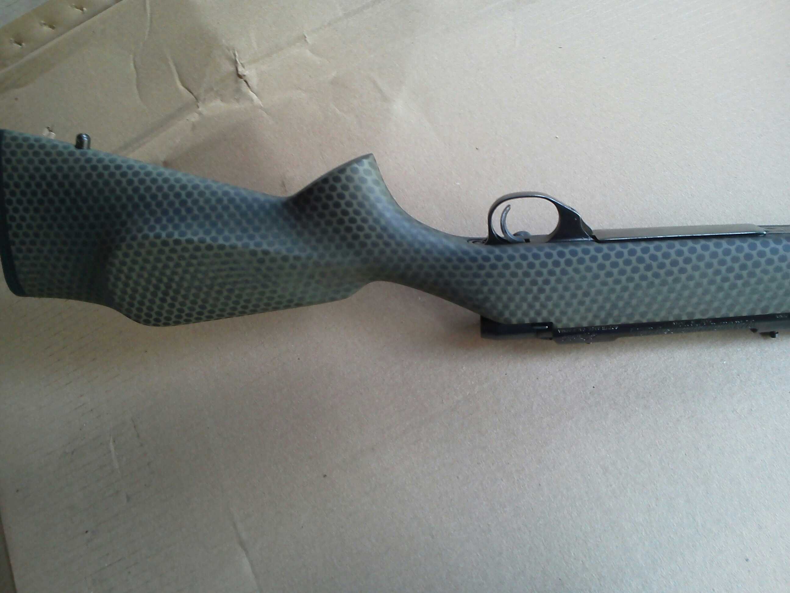 Newby here. Thought I'd see if I could post. I painted a rifle that my son bought. The rifle was in bad shape but shot good. I used od green and black aluma-hyde with a laundry net bag.