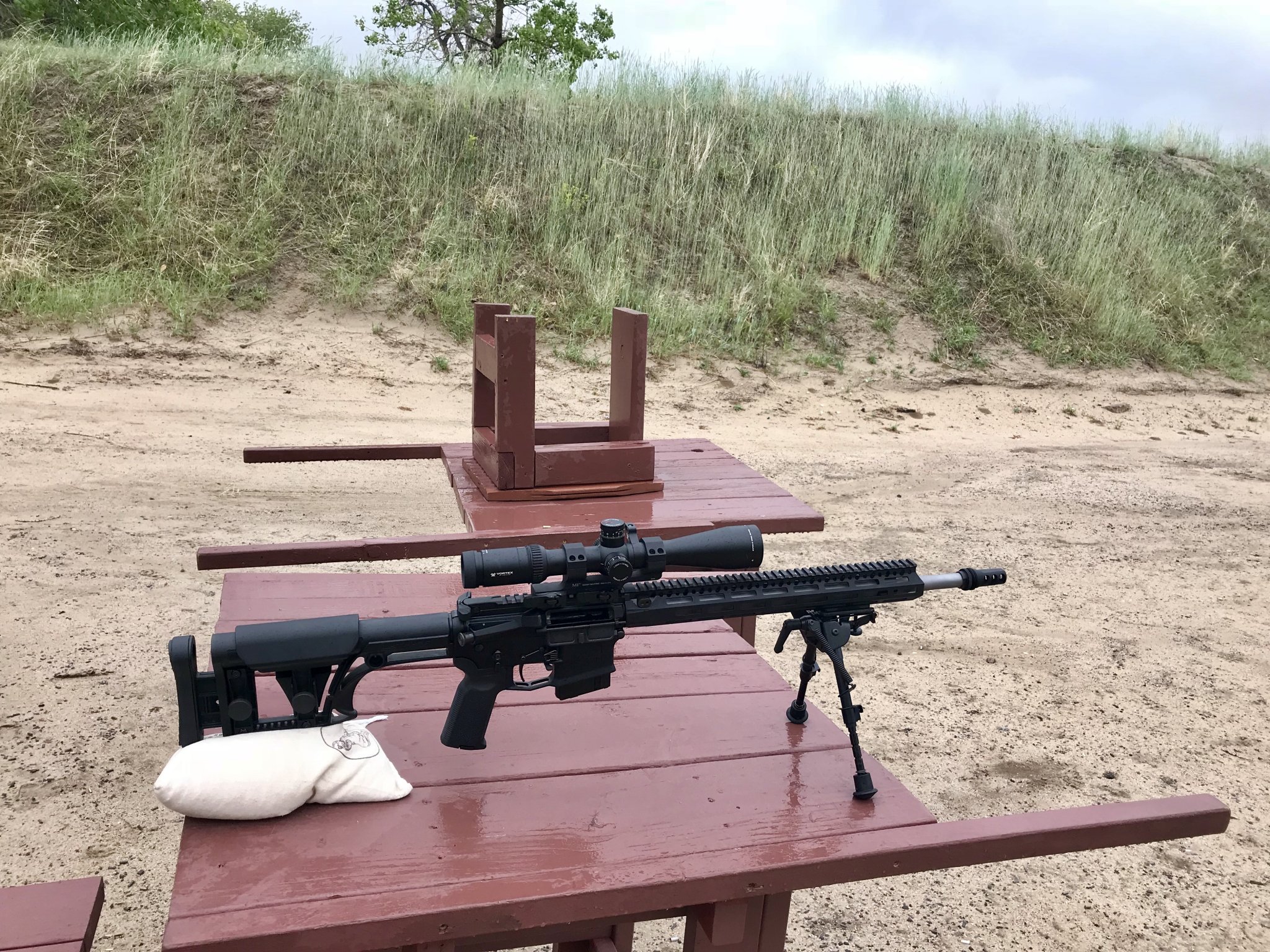 No gas AR-15, 100 yds, bench.