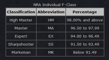 All shots within 2 MOA gets you into the 90's. Even I can do that, if you exclude a few fliers :)