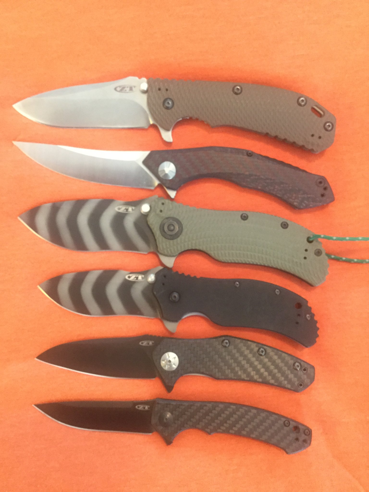 ZT 0450CF, great small EDC knife but I want to go back to something larger once I get out of my leg cast and start walking around normally again. I have two Kershaw Blurs with serrated edges and the glass breaker butt - $60 - best all-around work knives and not so expensive you go nuts if something happens but still made in USA and good quality.