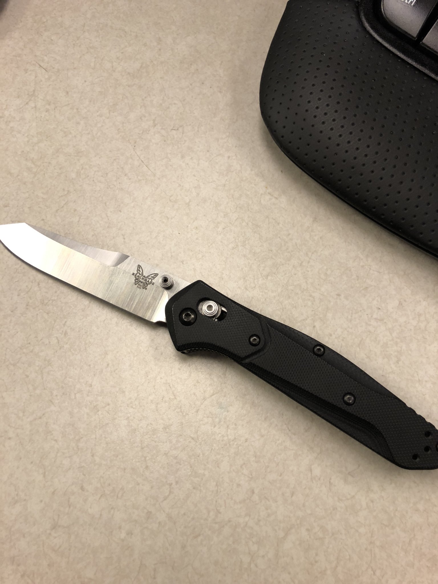 Black serrated Benchmade 810 most every day for the past 4 years. It replaced an olive sheepsfoot serrated Griptilian that I lost on a field op; it was a great knife and I was pissed. The CPM-M4 is awesome steel-takes a great edge without too much work and holds it for a long time. Its not stainless, so I also have the special edition one from a few years back with the M390 blade-also great steel.