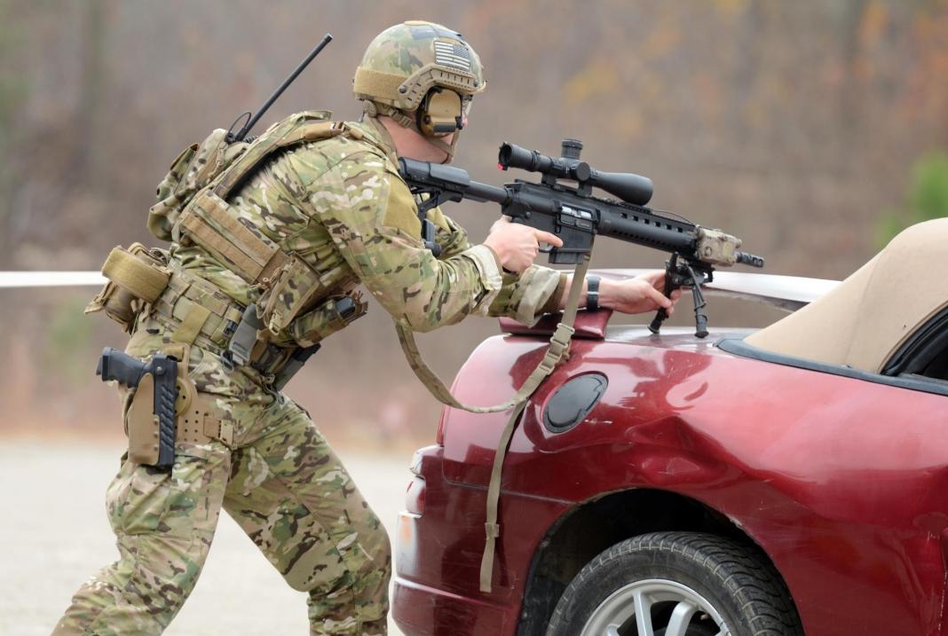 I have to agree with this and the suggestion of the Ares Armor Husky slings. I have used both the Vtac and Vickers/BF slings and the excess tail when tightened down has always been the only negative thing I can say about either model(and thats knit picking)See picture below. I did have the opportunity to play with the Saavy sniper and Ares slings and they have addressed the excess tail issue with their design.Ares is also making a precision rifle version called the Amentum LR sling. It looks interesting but I have not had the opportunity to try it. They have a video of it being used here. They only negative about any of the afore mentioned is that you cannot cuff up if thats what you want to do. As far as a single point goes, that has to be a joke right? Even with short barrel SBRs they beat your knees/body up when your not holding it in your hands,especially if you have to run,kneel down and use both hands, etc. The only time in my career that I have found a single point sling to be an ideal set up has been when doing window breaches while on rappel and thats it.