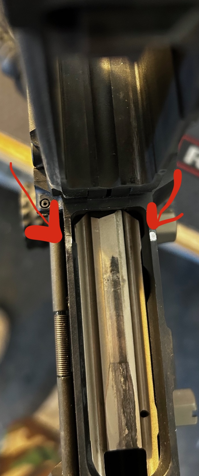 New MARS Piston 5.56, less than 500 rounds. Troubles with feeding due to poorly machined receiver set. You can see I have two hot spots that are wearing on my upper. Lower has same wear as well, where they meet.