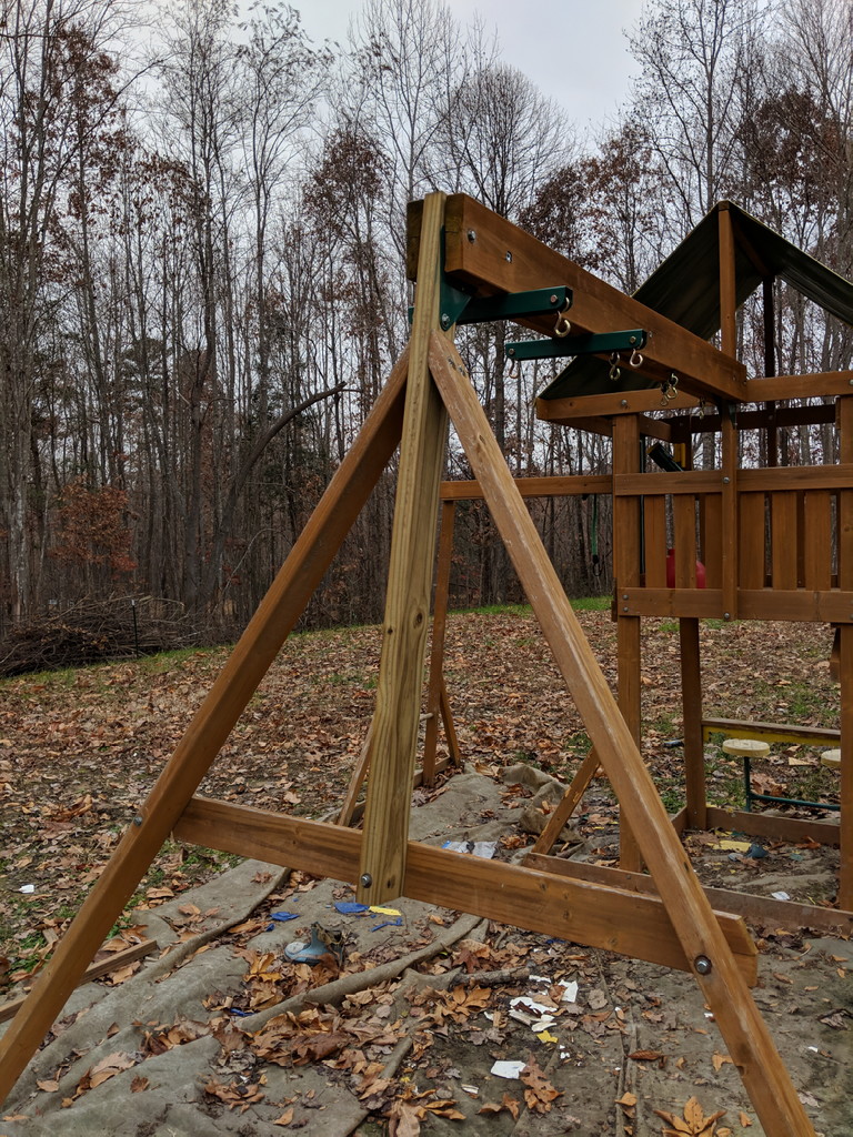 Now this is what Christmas is all about.The neighbors are out of town this weekend, so Mrs. T and I played Santa's helpers and fixed the broken leg on the gym set that's been down for 6 months.