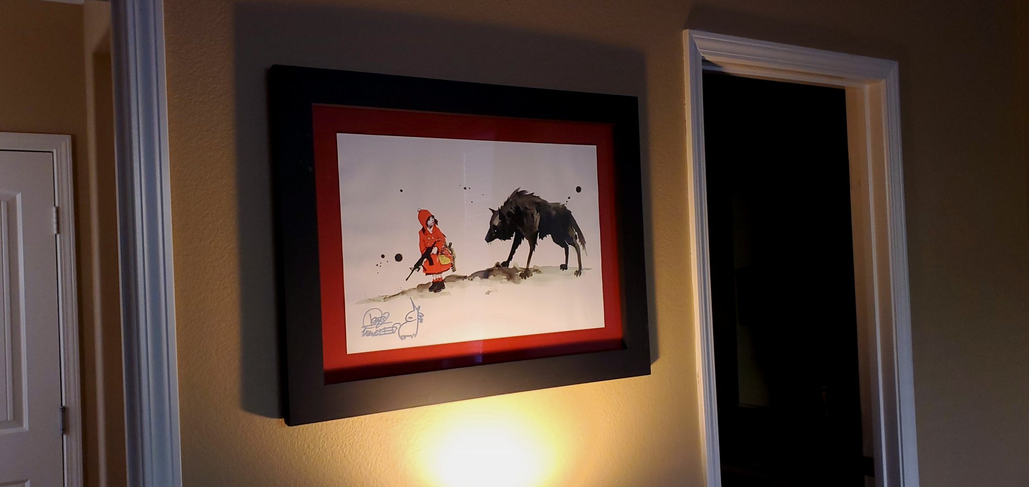 Put some pro-2A art up :) my beloved Red Riding Hood print by Lora Zombie. Signed. Frame is custom and made by my grandfather at the ripe age of 90.