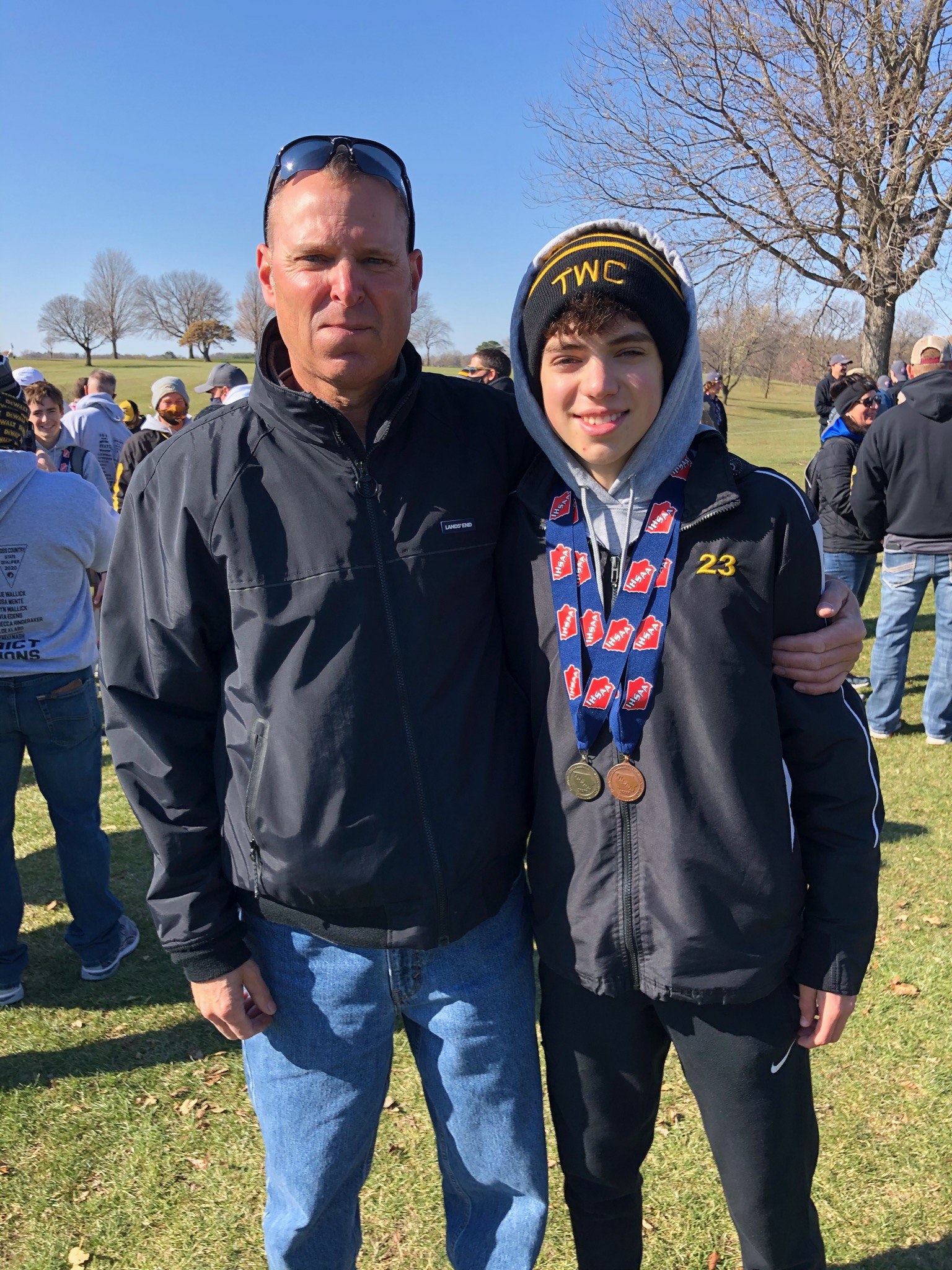 Yesterday’s view. State Cross Country Meet in Fort Dodge. Bad news was his team finished second. They had won the previous 2 years. They are young having graduated 3 seniors from the year prior. All 3 of those running at D1 or D2 schools now. Good news was he made the podium which took the sting out of defending the title a bit. It was cool with a 25mph wind. He’s second guessing his summer training leading into this season which consisted of baseball, working for a tree service, and fishing 😂. Still small at 5’6” and 113 lbs as a sophomore.