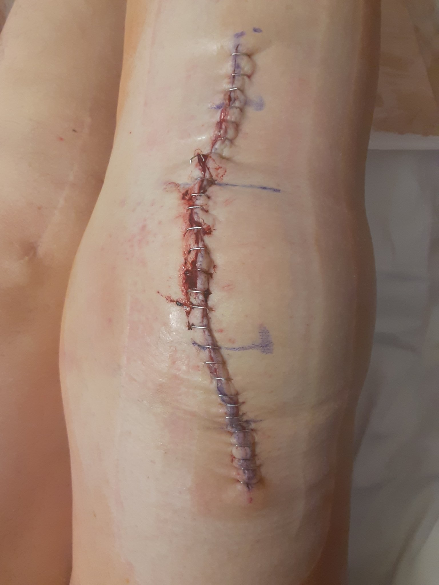 I think it's pretty sexy myself. Plan is let this heal, get some mobility and strength back then do the left knee. Right now mobility is great with only a cane, start rehab in a couple of days. Way better shape this time than 2012.