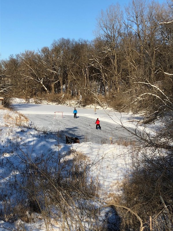 Your pond is getting a nice skin on it for sure. Our pond is in a remote area and not manicured anything like yours. It’s a chore just getting the big Ariens down there to clear ice. I drilled it just before we left today and it was at 7” of clear black ice. It’s spring fed, so there is a portion of it that is a NO GO zone. More than one puck has been sacrificed over the years to the “Spring Gods”. The spring fed area just skinned over last night.