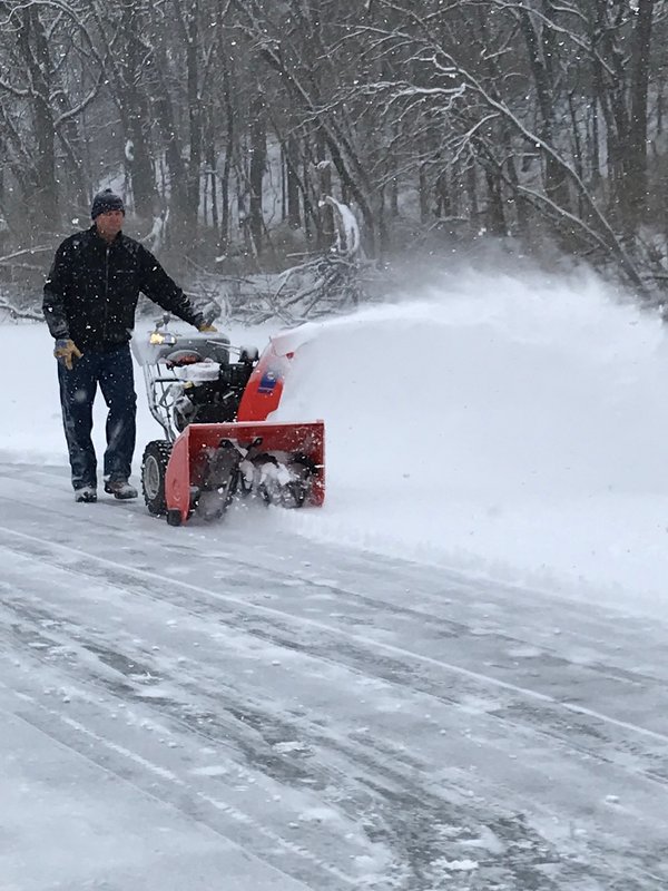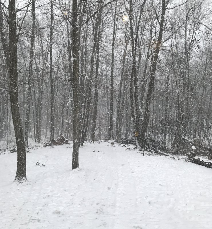 My son’s view today while the ol’ grump is trying to keep the ice clear for skating and hockey. We were getting 2” or so per hour about the time this was taken. Pretty in the timber today with the snow and a warm up to 15 degrees. Forecast for the next several days are highs of sub zero.