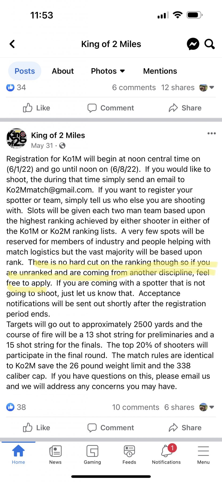 This is hilarious. Did you even apply because when I asked earlier this year you made all kinds of excusesPerhaps if alex wants his idea to become true he should let my self pete and charlie go to the go to the ko2m next year. Seems that lots of names on the list this year were new and not within the 150 and above ranking . Seems that lots of the great shooters in the industry chose not to sign up. Perhaps that has somthing to do with the way its run. a side note the stroker was not there as that is a cheytac necked up. The hellfire is cheytac cylinder brass it has more capacity for the most part matches the performance of the barrett when the barrett run at velocities that bolt lift goes away. Note non of my comments are to dis credit the winners circle. Great job Justin and Stanley