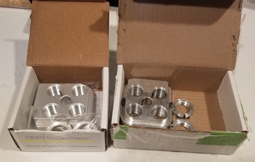Whidden floating toolheads for Dillon 550 w/ lock rings, one new, one (clamping) used $45 each **Both SOLD**