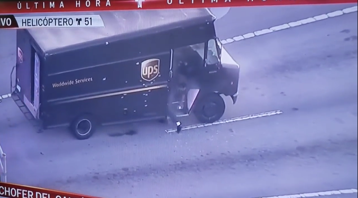 Poor UPS driver lad was trying to get away. From that view it looks like he did almost get away...until, well...