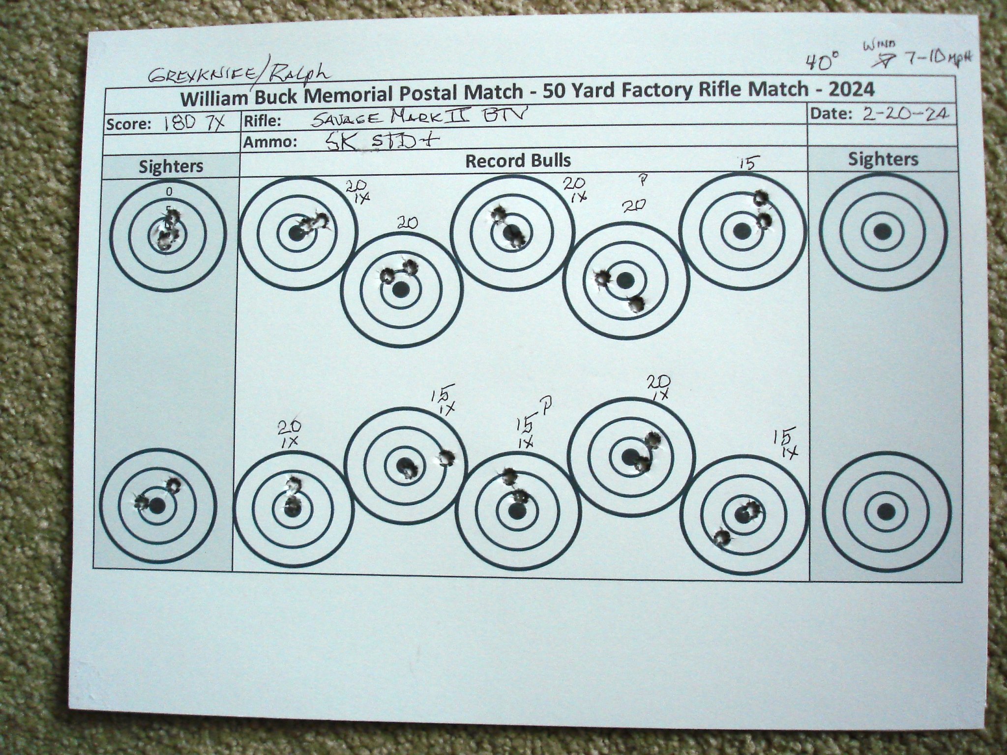 Randy, I have your scores posted. Good shooting with your 40X!