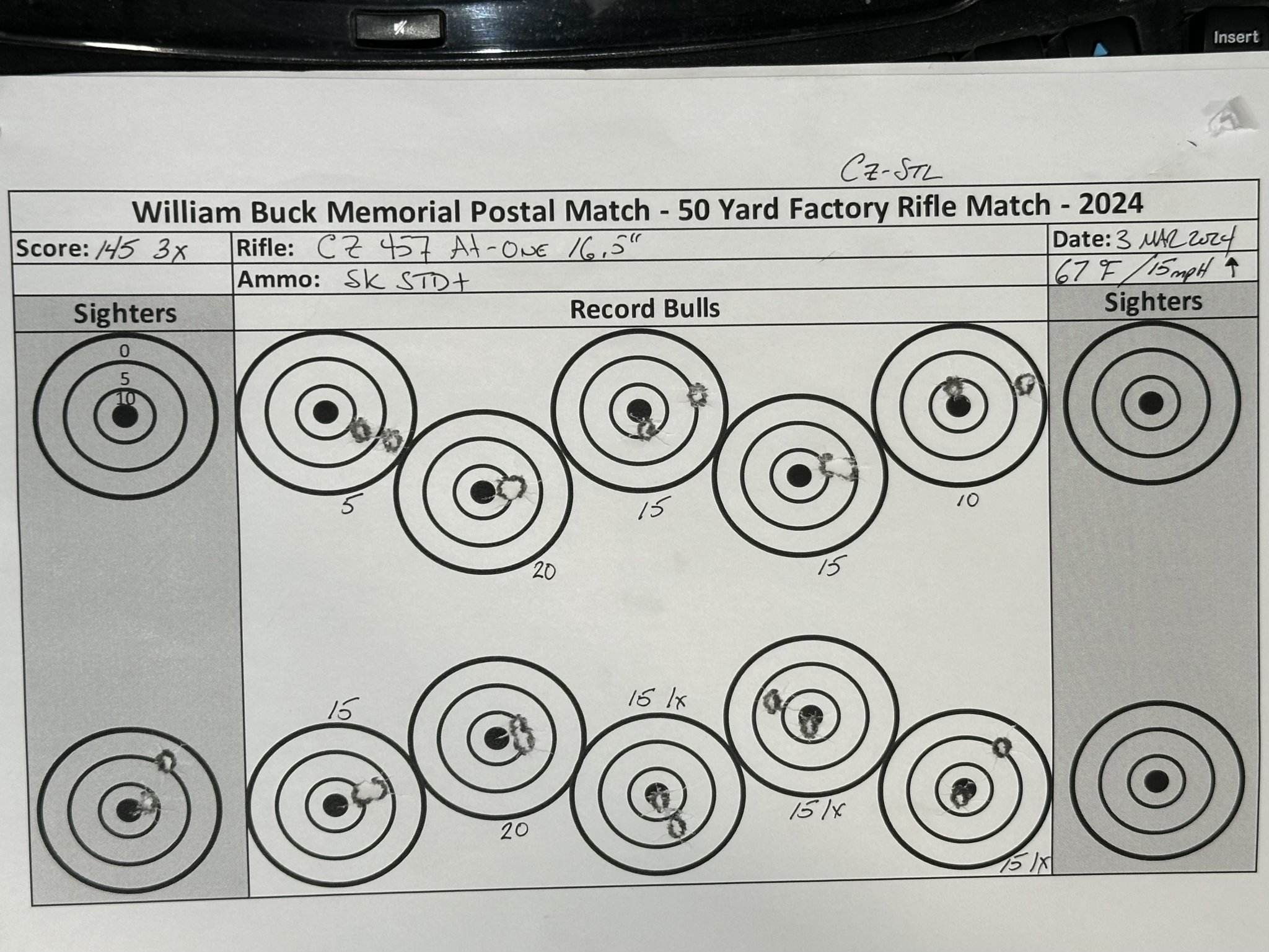 Randy, I have your scores posted. The 10-shot really needs a calm day to shoot it well...