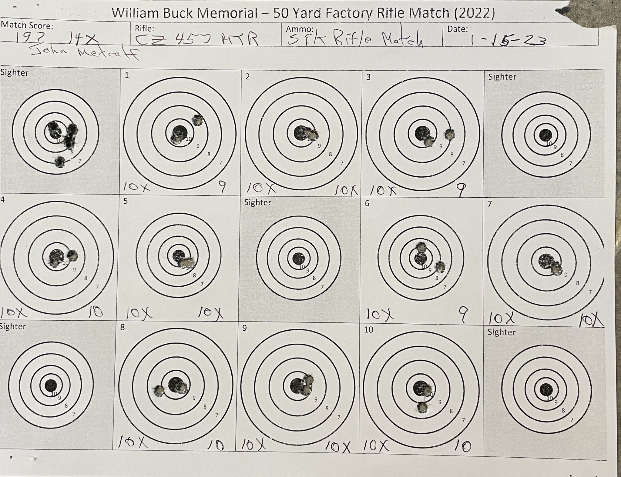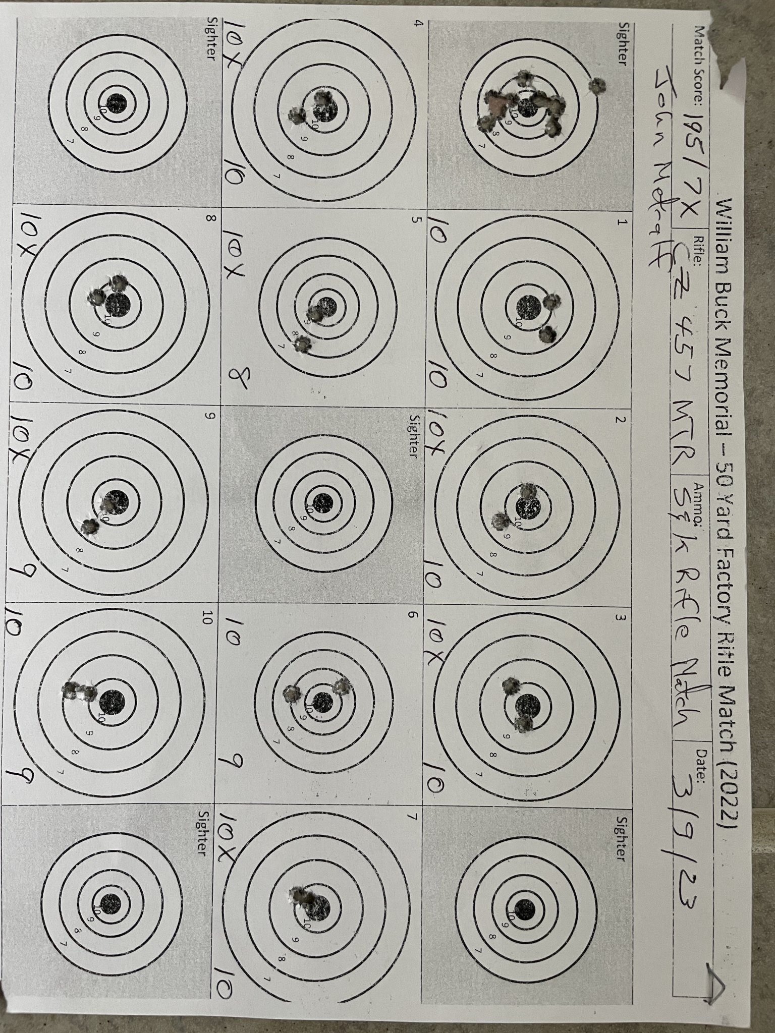 I'm a little fuzzy on what constitutes a match vs unlimited rifle, but the Suhl 150 I used in both targets was an unmodified factory Suhl so I think both are Match grade Match rifle scores.Cournot, I have your Feb target score posted.