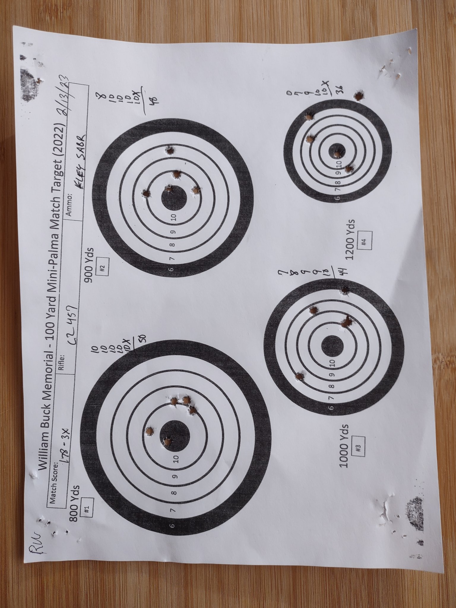 RAW, I have all your scores posted.02/13/23 - 100 Yard Mini-Palma Target Score for: