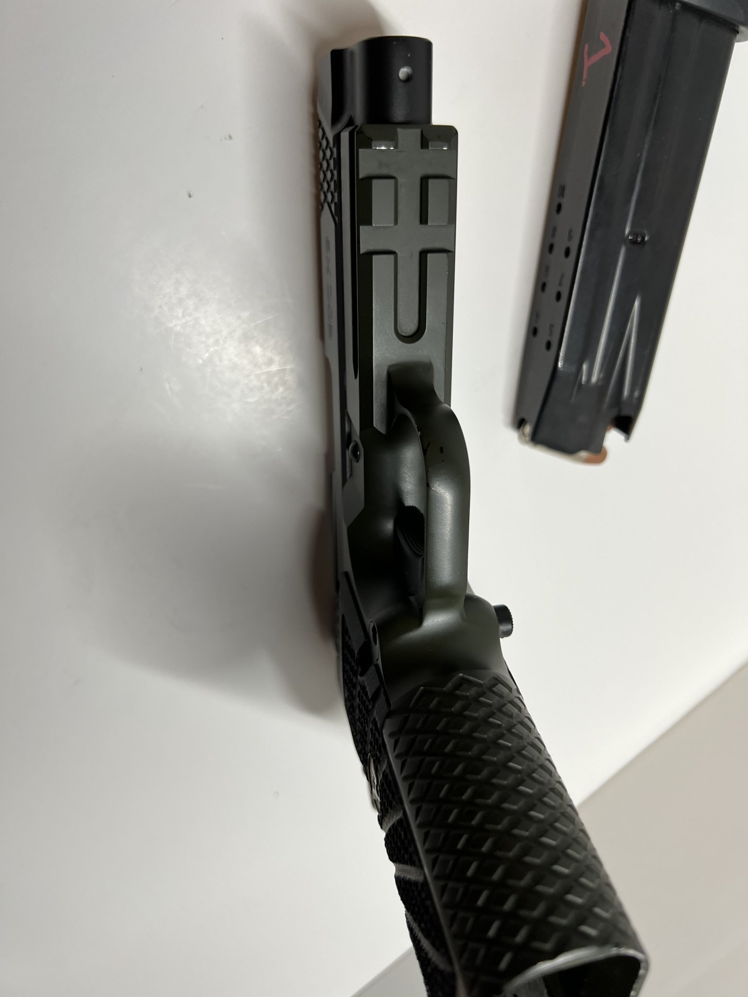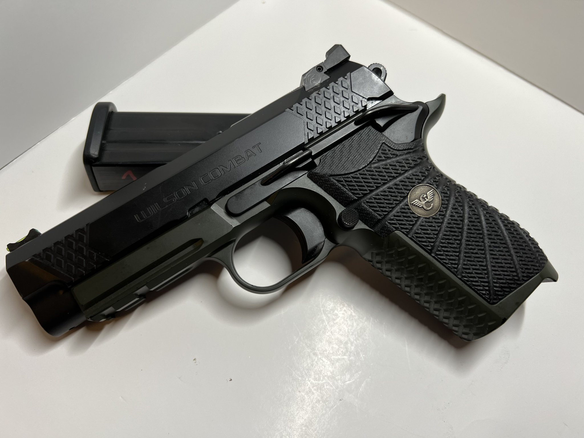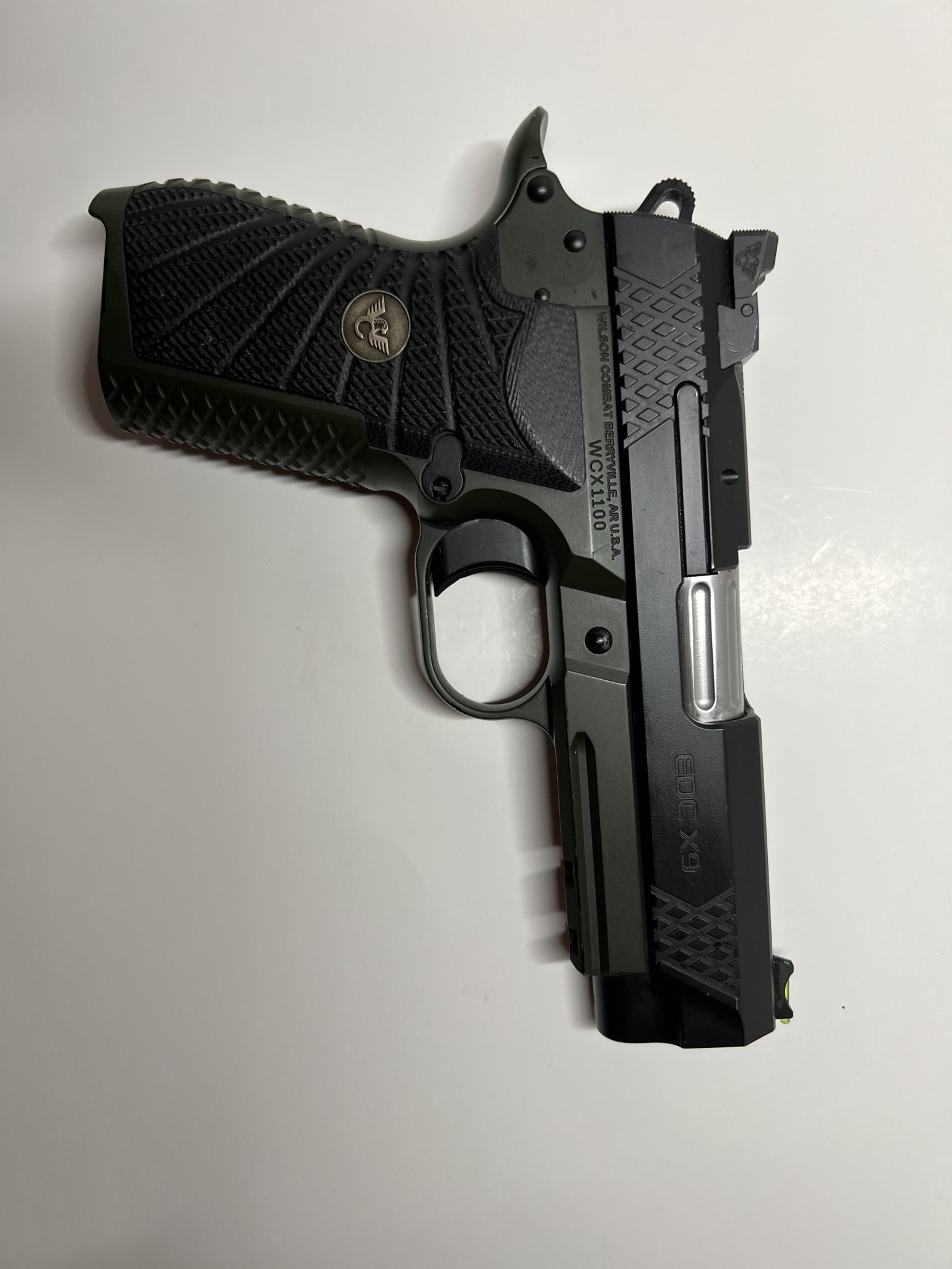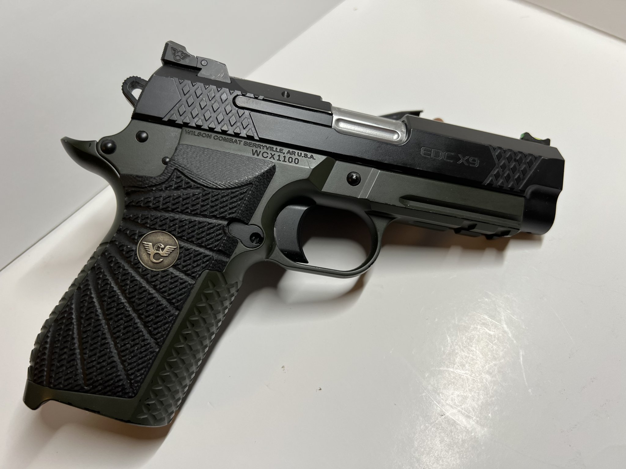 Selling my Wilson combat EDC X9, has black slide and od green frame, comes with all original paperwork, 2 10rnd mags, skull crush holster, and wilson bag. Gun shows signs of wear, probably has around 1000-1200 rounds through it. Shoots like a dream. Pm me for any questions. asking $2400 shipped