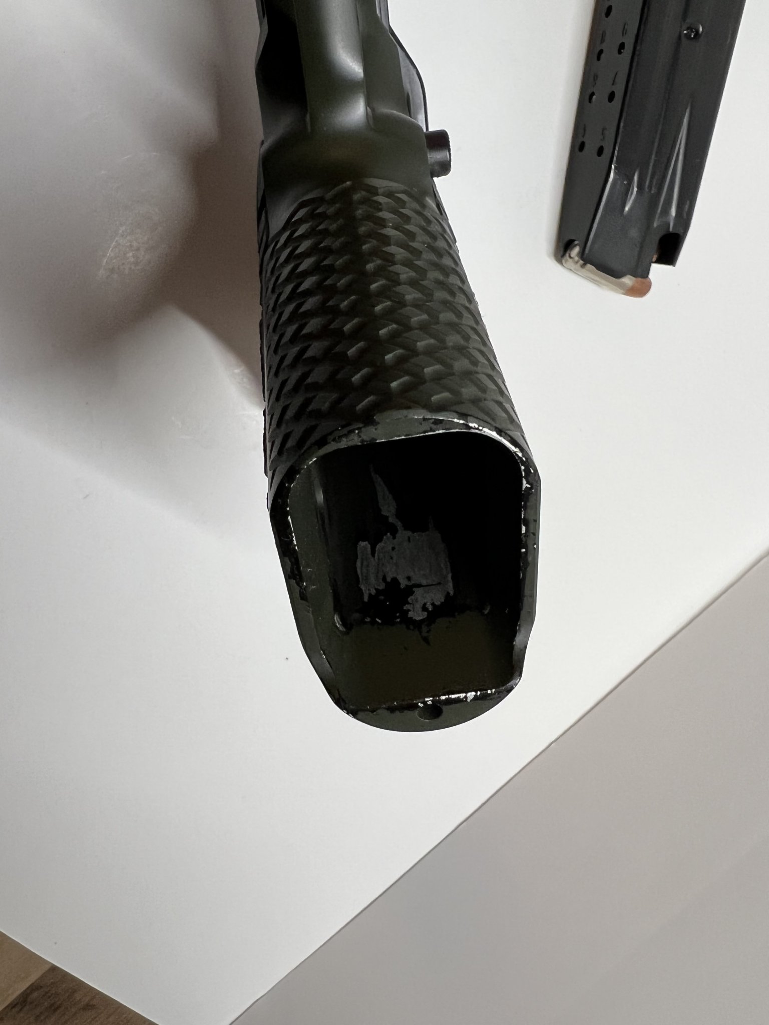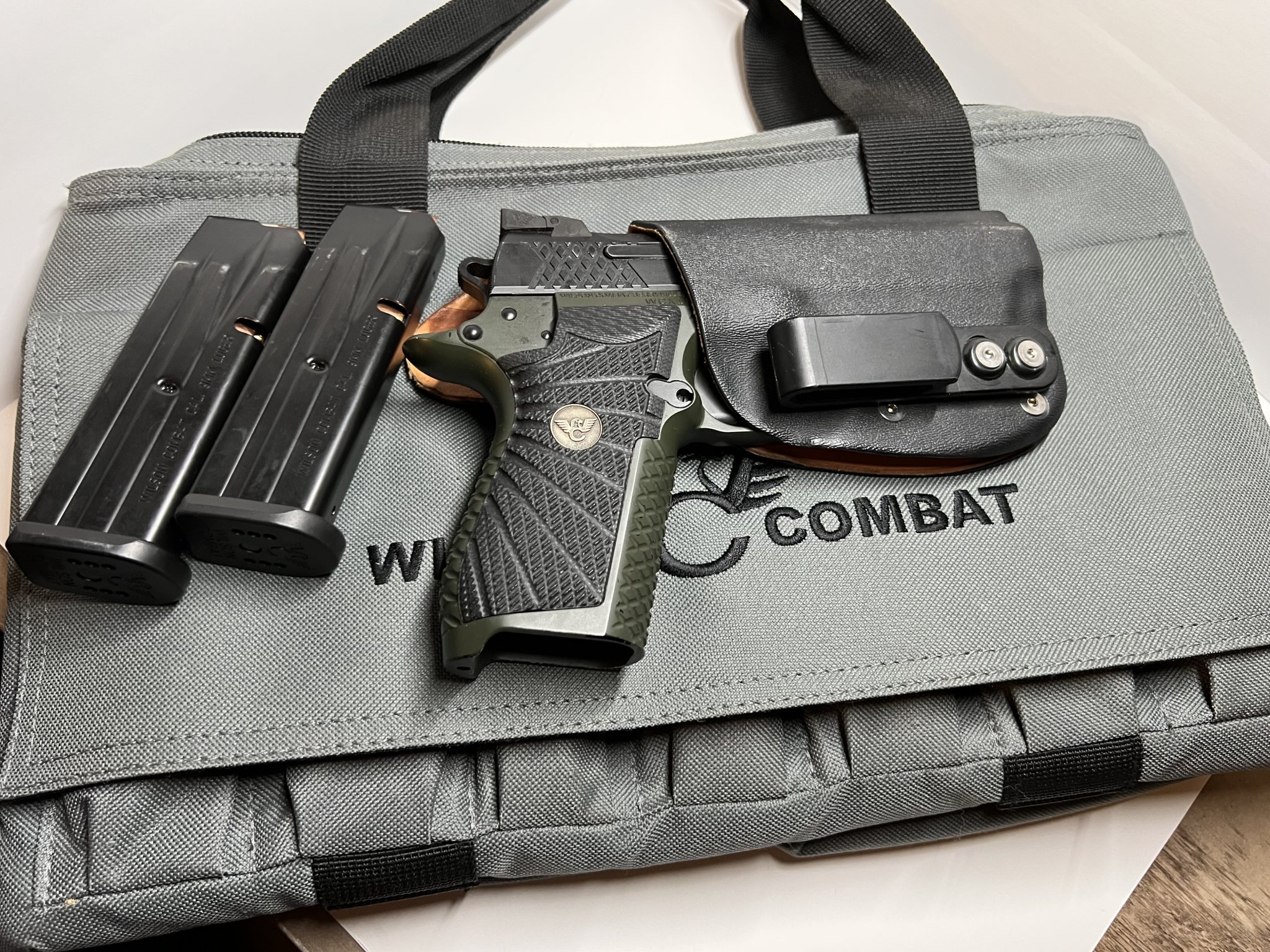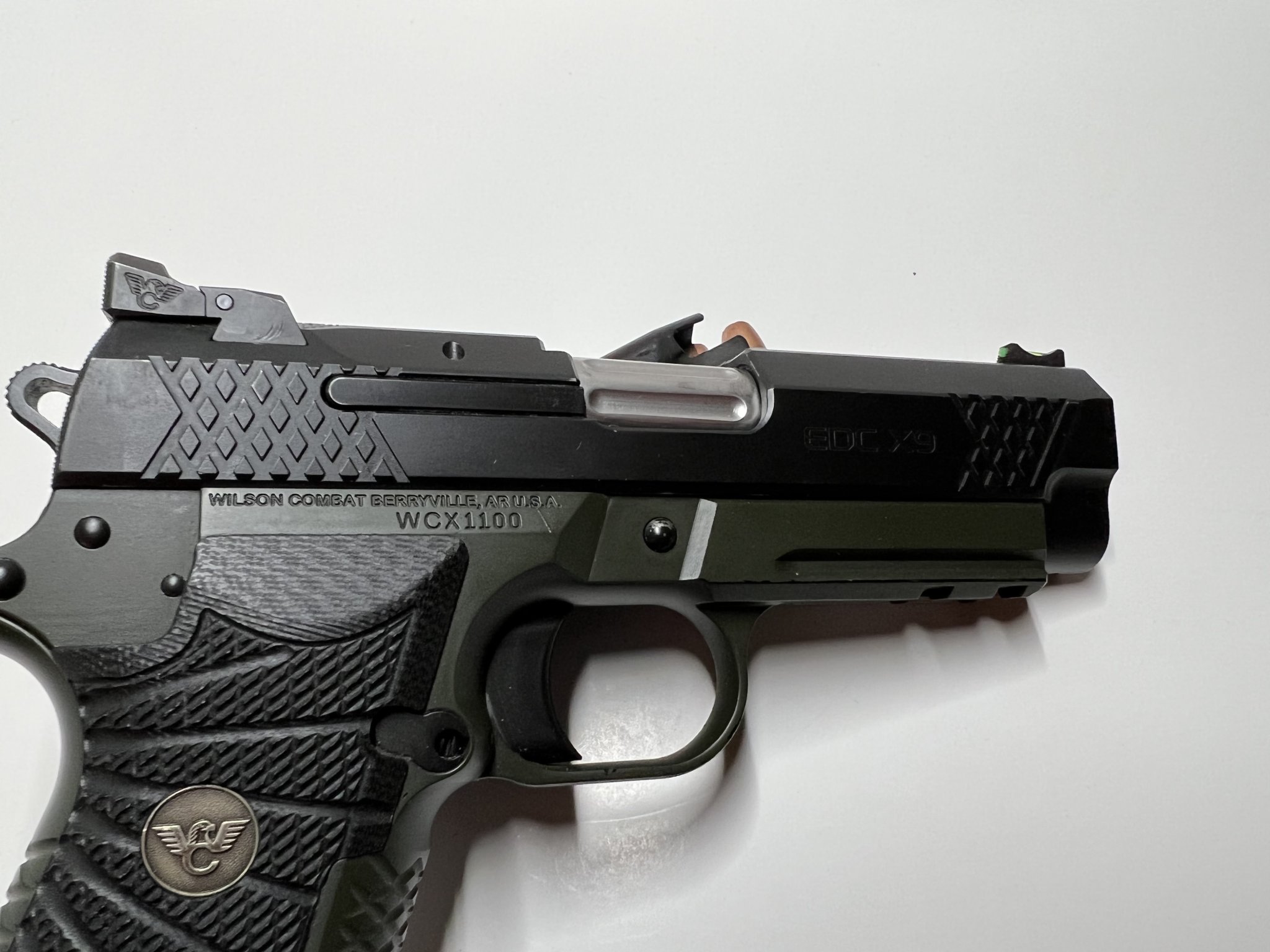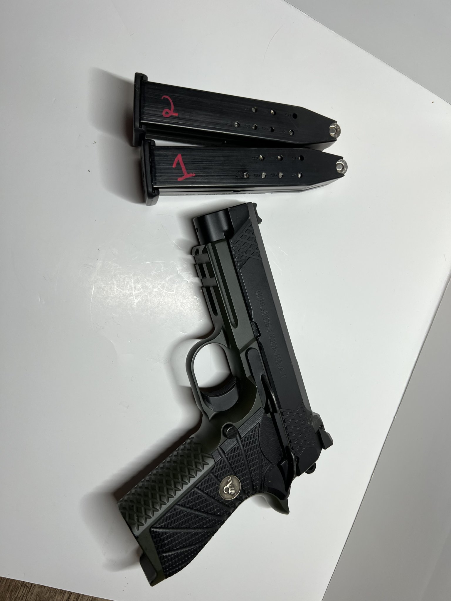 Selling my Wilson combat EDC X9, has black slide and od green frame, comes with all original paperwork, 2 10rnd mags, skull crush holster, and wilson bag. Gun shows signs of wear, probably has around 1000-1200 rounds through it. Shoots like a dream. Pm me for any questions. asking $2400 shipped