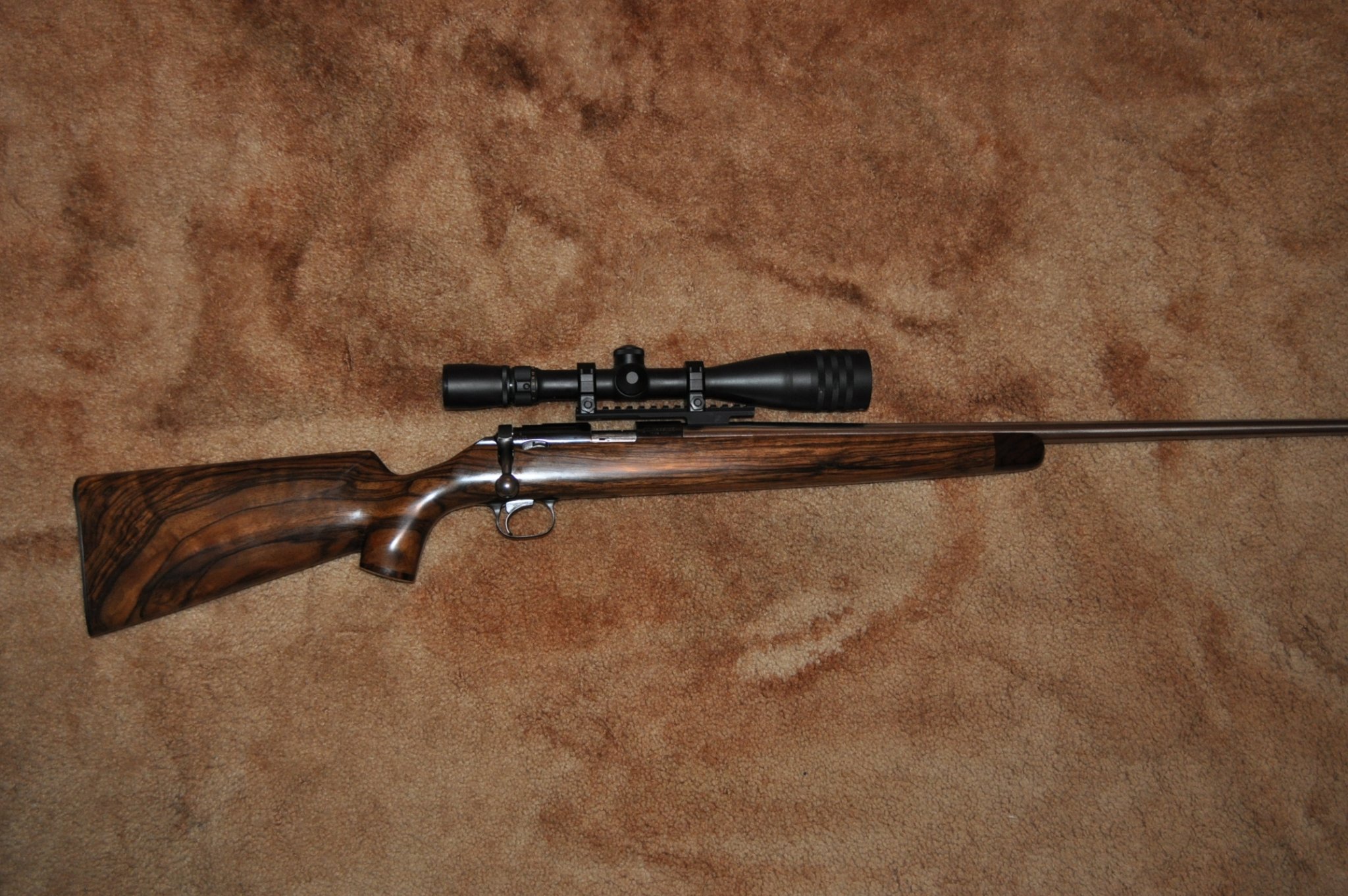 The optics setup is an EGW 20 MOA base, Burris Signature Series rings and a Vortex 4-24x50 Strike Eagle. BTW, this EGW rail will also work with the H&R Model M12 and the Anschutz 1813. Also worth noting with this setup the bolt handle barely clears the magnification ring.