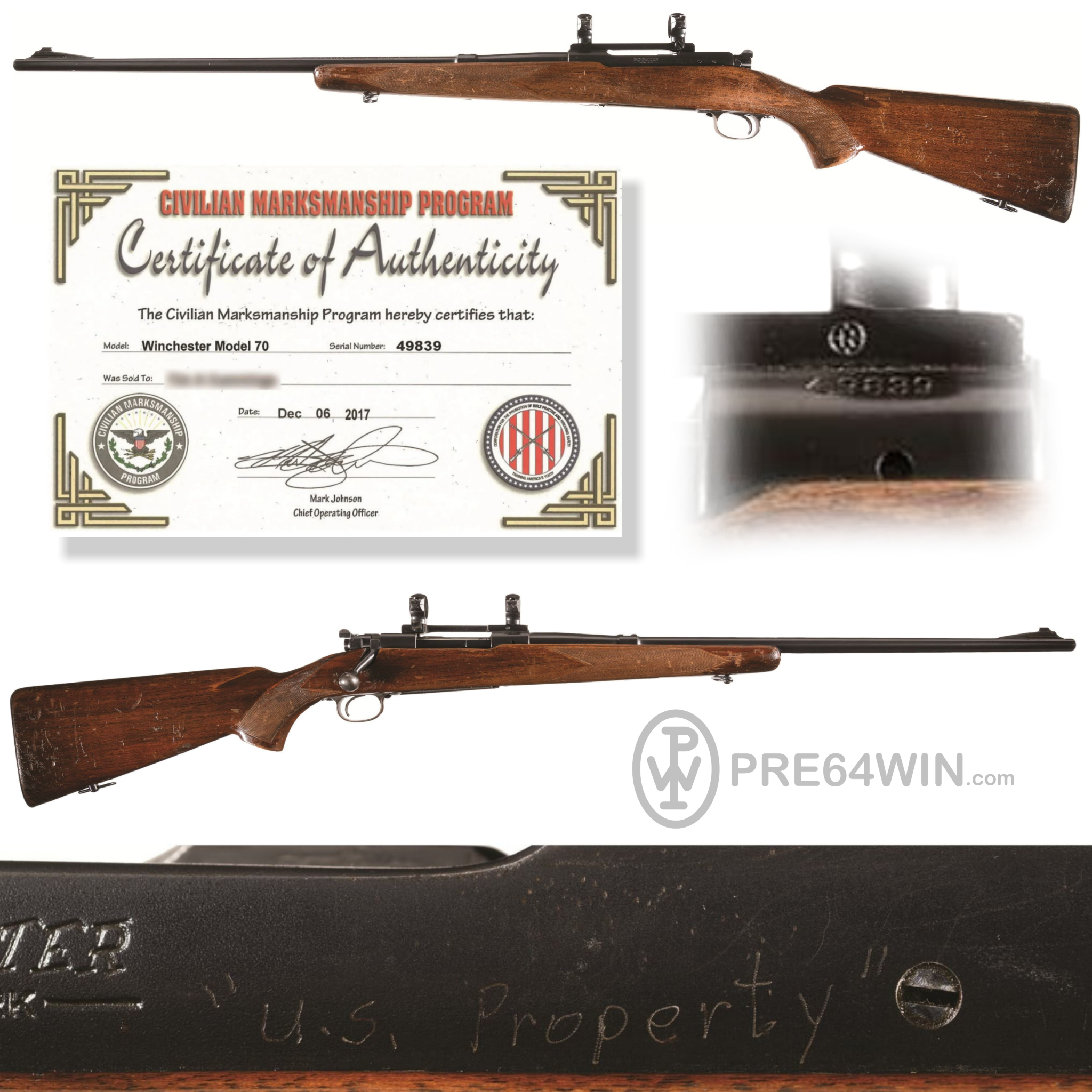 A US Property 1941 M70 in .30 Gov't 06 showed up in the last RIA auction and I bit on it. I put in a silent bid before the auction and believe I was the only bidder - I picked it up for the opening bid price. The serial number is not documented by Chandler & Chandler, but the CMP cert that came with the rifle indicates it's one of the missing numbers. This one fits nicely between two of the Chandler documented numbers. Should be here in a couple weeks. Definitely a rack rifle, but glad to snag another part of Winchester / USMC history with this one.