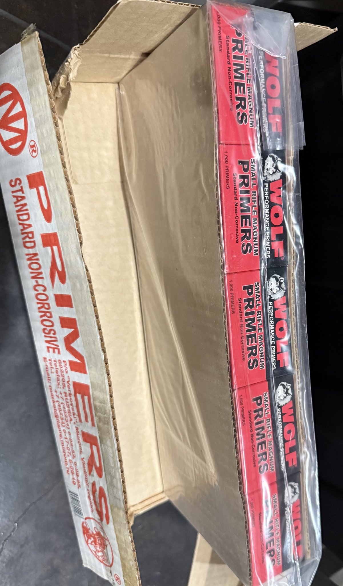 10,000 wolf small rifle mag primers all the same lot all still sealed in the original plastic. sold located in central Mississippi but travel to various Pro PRS matches.