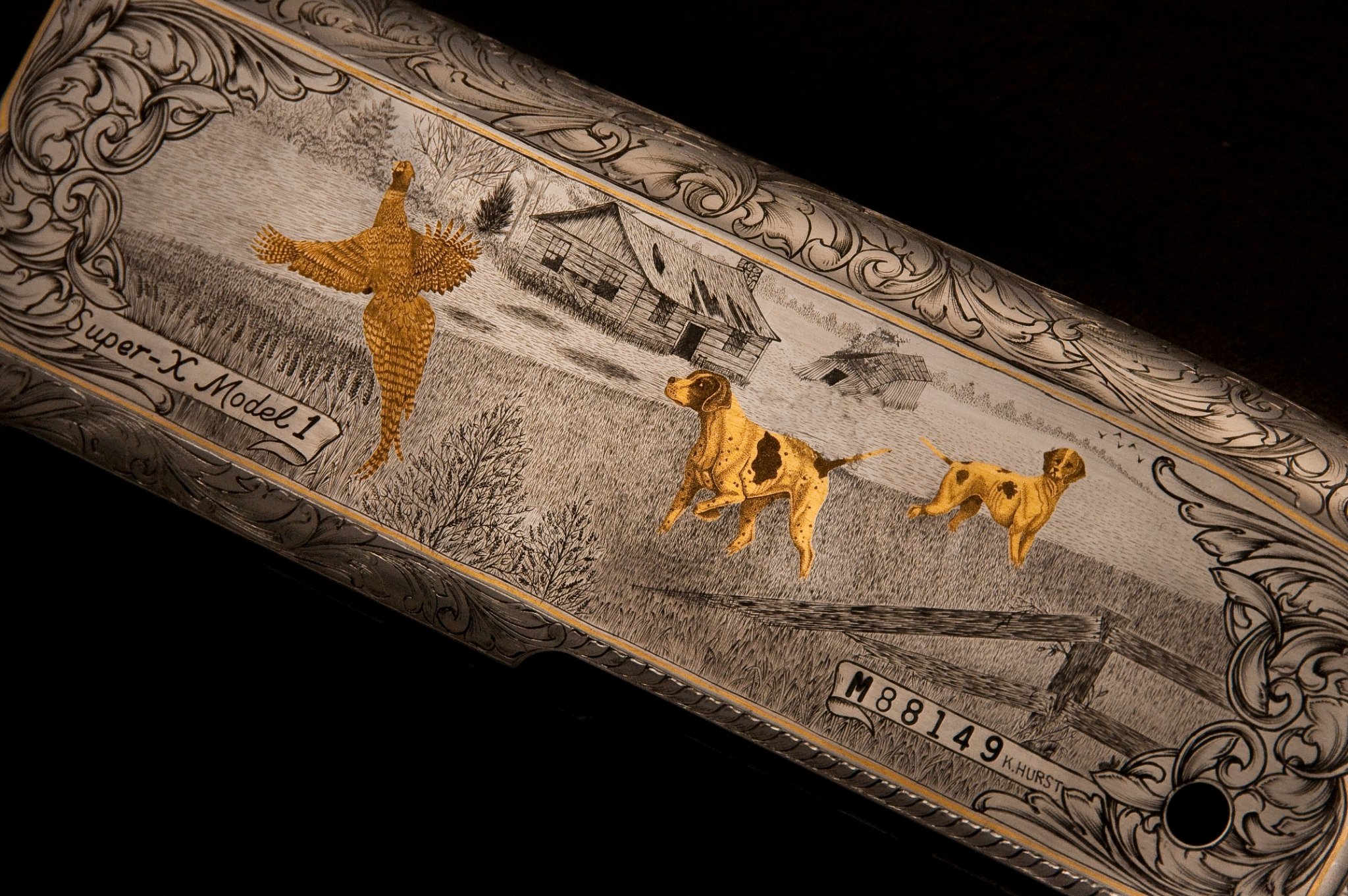 Kolar two barrel skeet setKeighoff k-80 two barrel skeet setKreighoff K-20 w 30” Parcours barrels.Berett 687 Gold (no fucking “E”) 12/20 ga setI did sell my Mod 12 and 42. Both were wonderful early versions of these shotguns in very desirable configs.Win SX-1 - set up for skeetWin SX-1 set up for SC and 5 stand.Win SX-1 that is an absolute work of art done by Ken Hutst who has sadly passed. Highly engraved w gold animals and extraordinary wonderful back grounds and detailed art workHere are a few pics in the white which shows the work off best. I keep showing it out of respect and friendship for Ken Hutst who was a super guy in addition to being a great craftsman.Benelli Black Eagle - goose killer and it works in freezing rain5Handgun