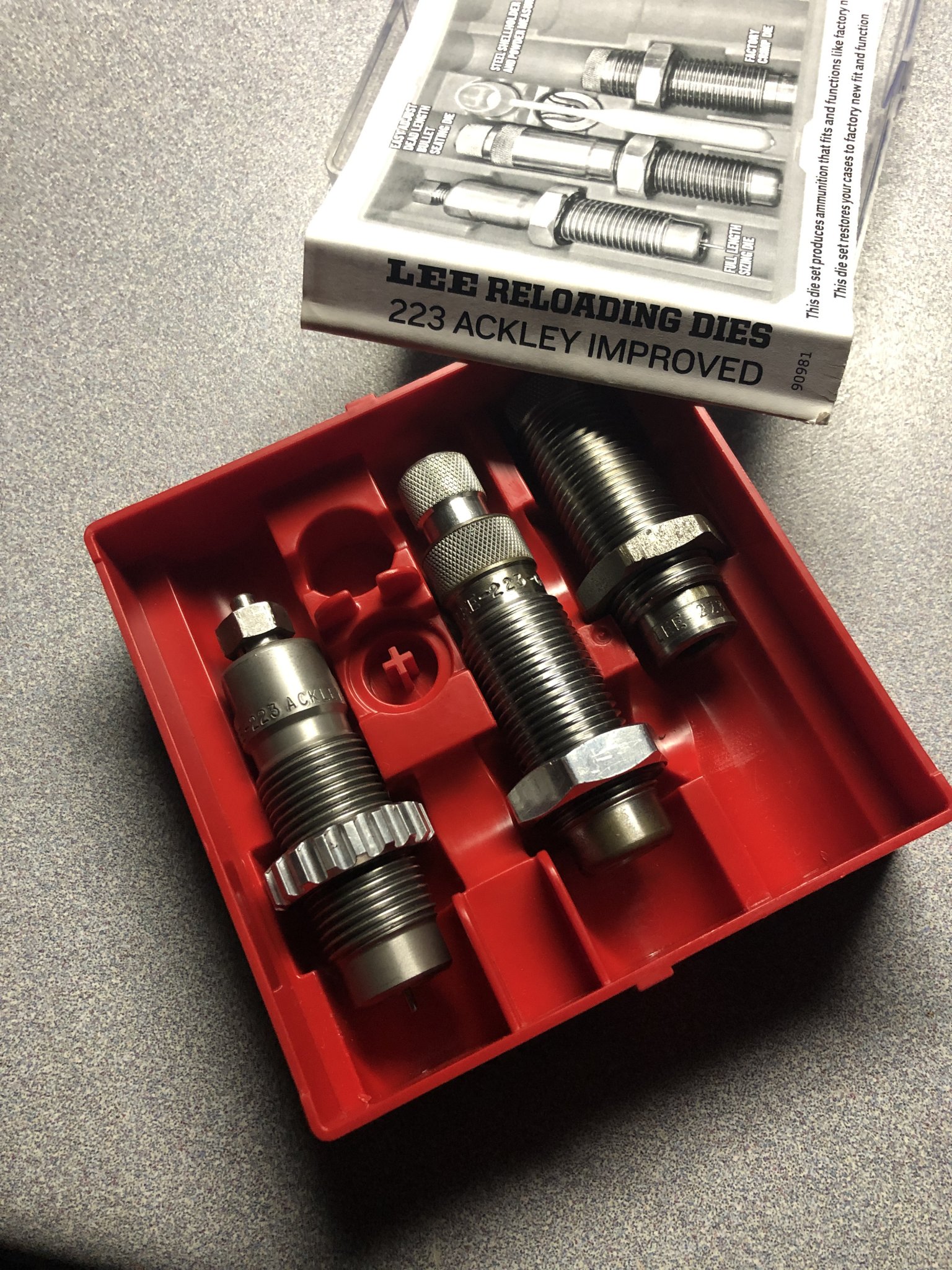 No scoop or shell holder. Also, the seating die says Lee - 223 - GT, which is weird to me. I used to use it fine before switching to a micrometer, but I can’t figure out where the GT is coming from. Never used the crimp die.