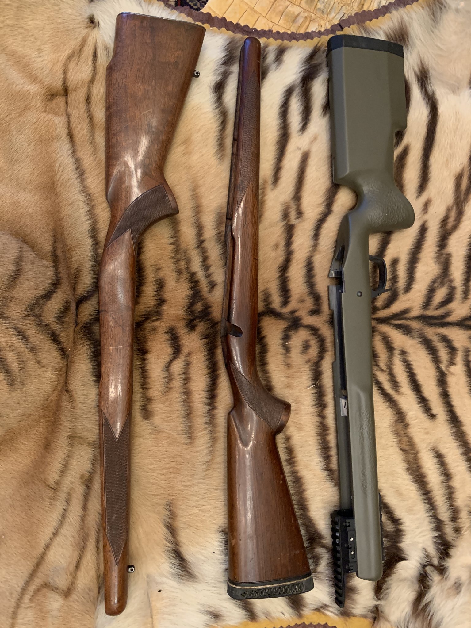 This new Manors LA minichasis stock. Has EFR. Unused. Green one on right.