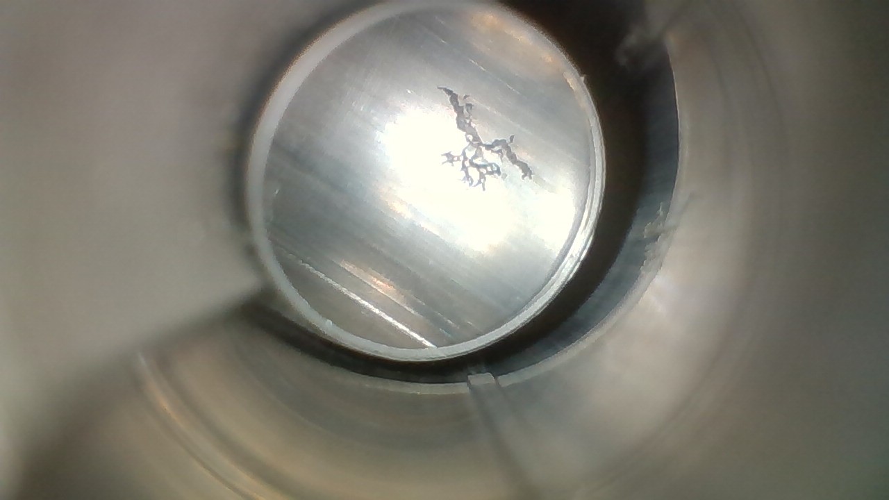 Considering the location of the "worms" is limited and none of my other barrels have this issue, I'm inclined to think that a defect in the steel could be a factor. However, this was not seen the 2 other times I scoped this barrel, at 0 and 218 rounds.