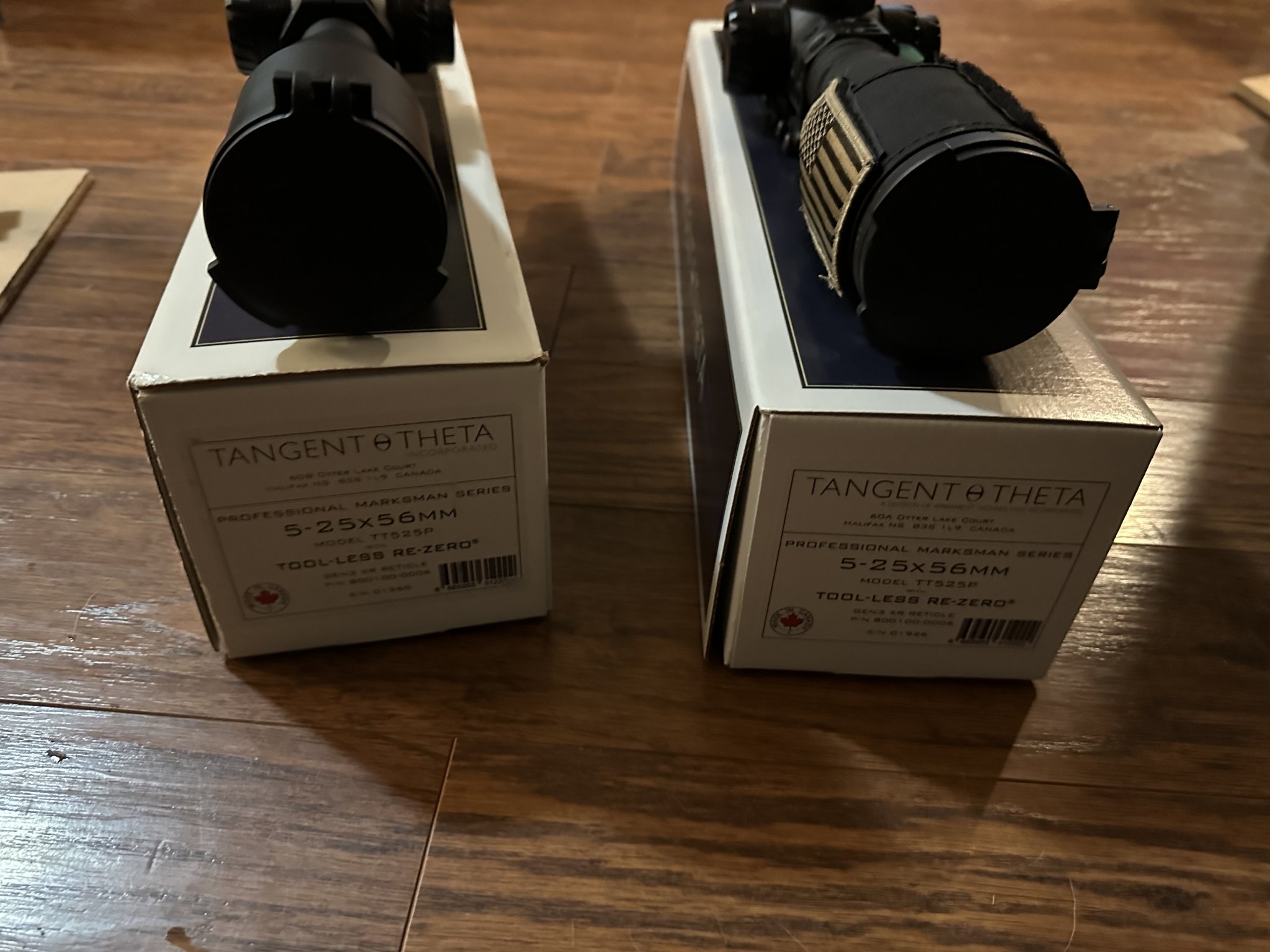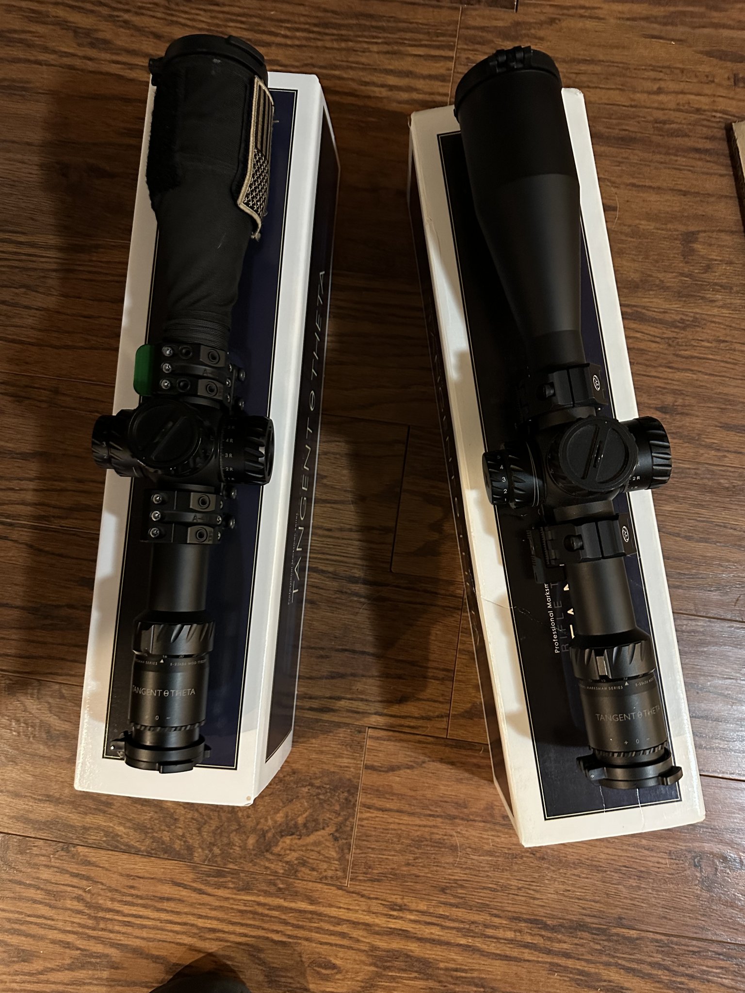 I am looking to sell (2) Tangent Theta 525P Gen3XR one is currently mount in a spuhr and the other is in an arc m brace mount. Both have been used but not abused. Comes with all original boxes and accessories. Both have scope chaps with them.