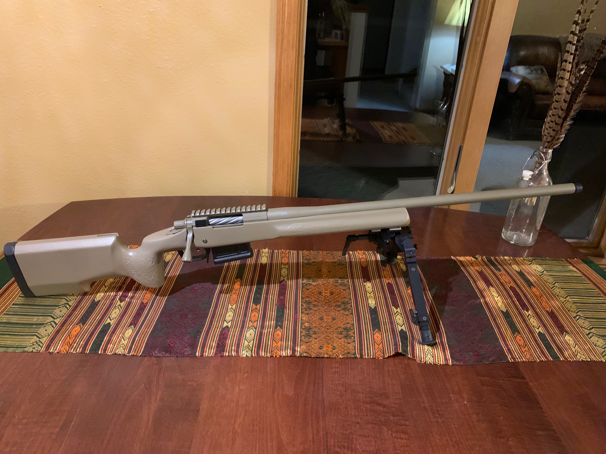 * Defiance Deviant action with a 20MOA Picatinny rail. Bolt has been bushed by Gretan Rifles this past summer (no pierced primers anymore).