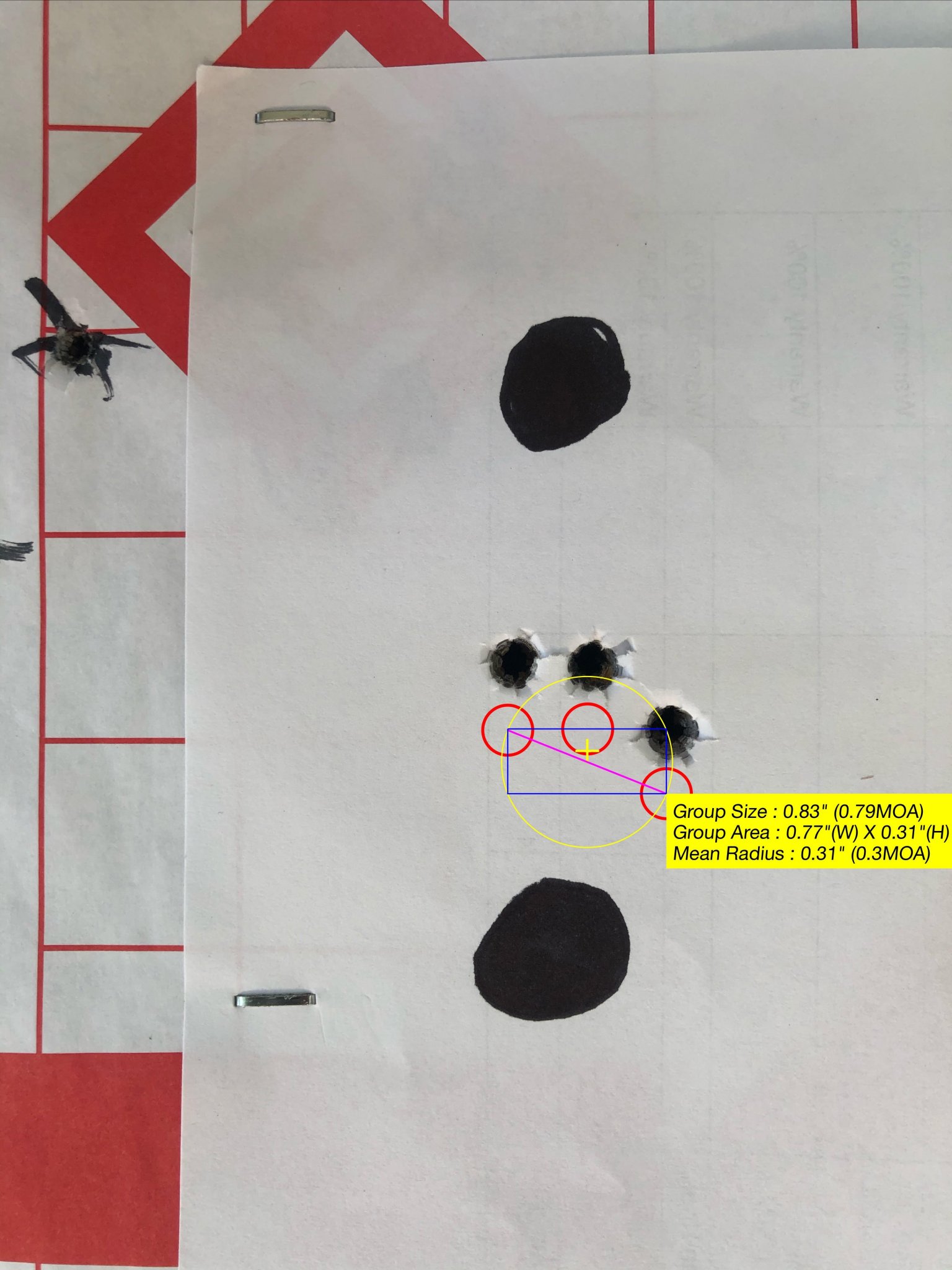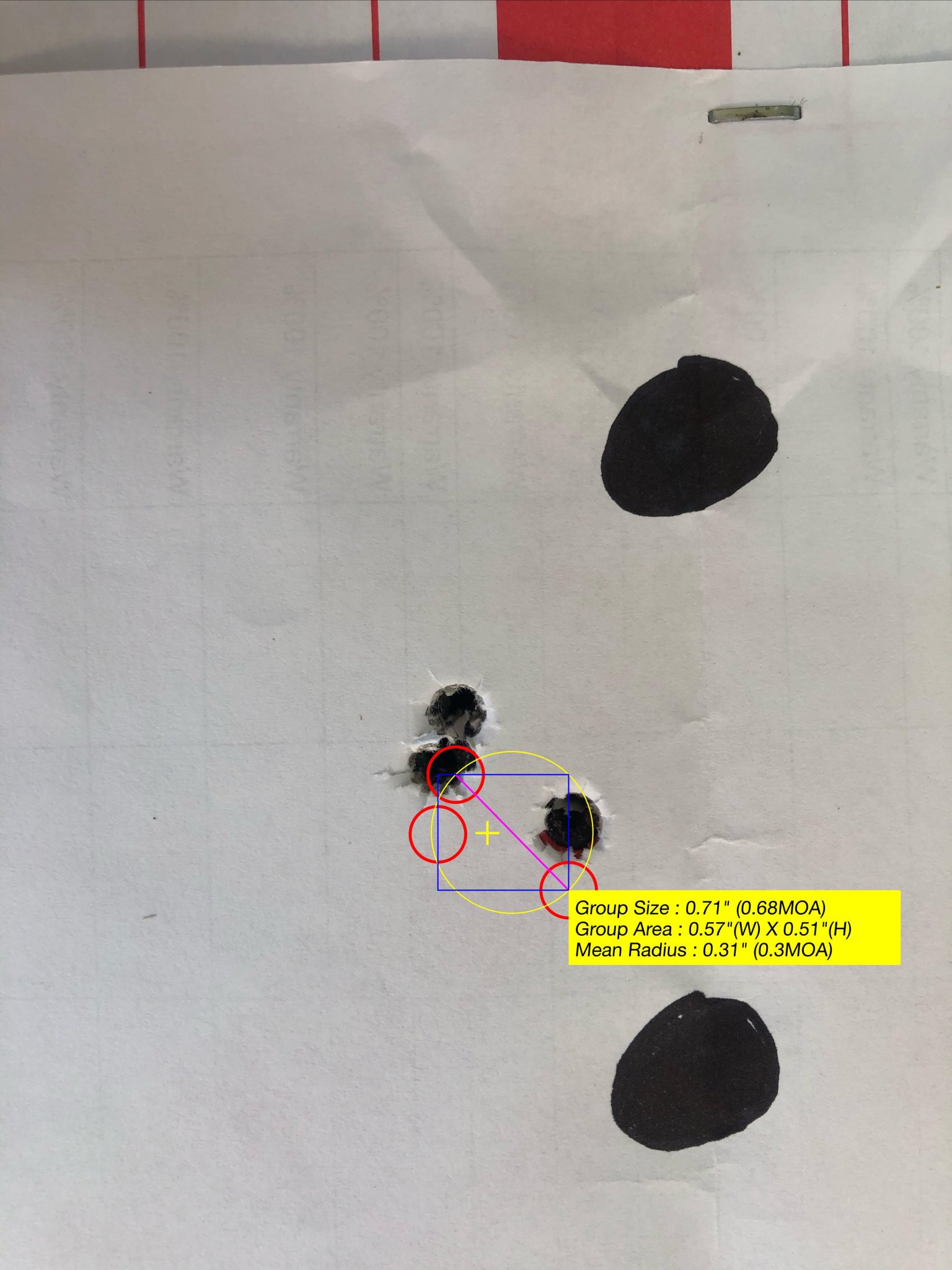 The three pictures of groups are from Unknown Munitions loads with 108 (2961 fps) and 115 (2933 fps) Bergers and a quick load I threw together and didn't tune using the 109 Berger (2931 fps). It has shot better groups but I can't find the pictures of them. Carbon 6 has a 1/2 minute guarantee with quality ammo.
