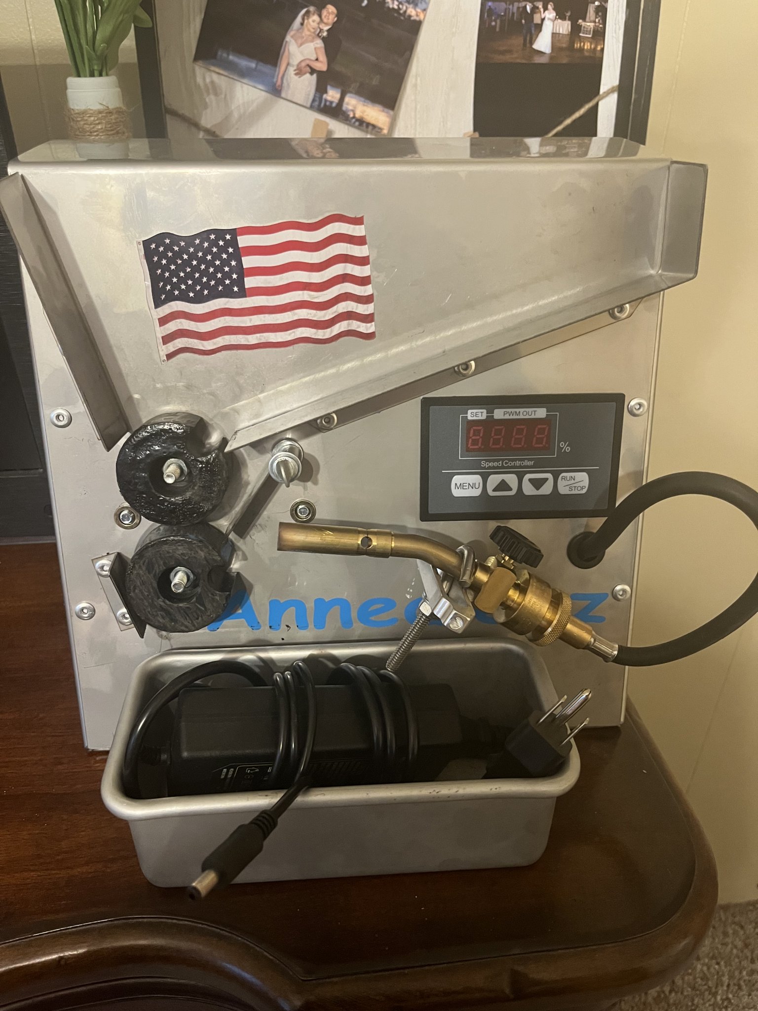Annealeez annealer lightly used… wheels are a little melted but still works just fine. Wheels are cheap anyway. Does include metal tray.