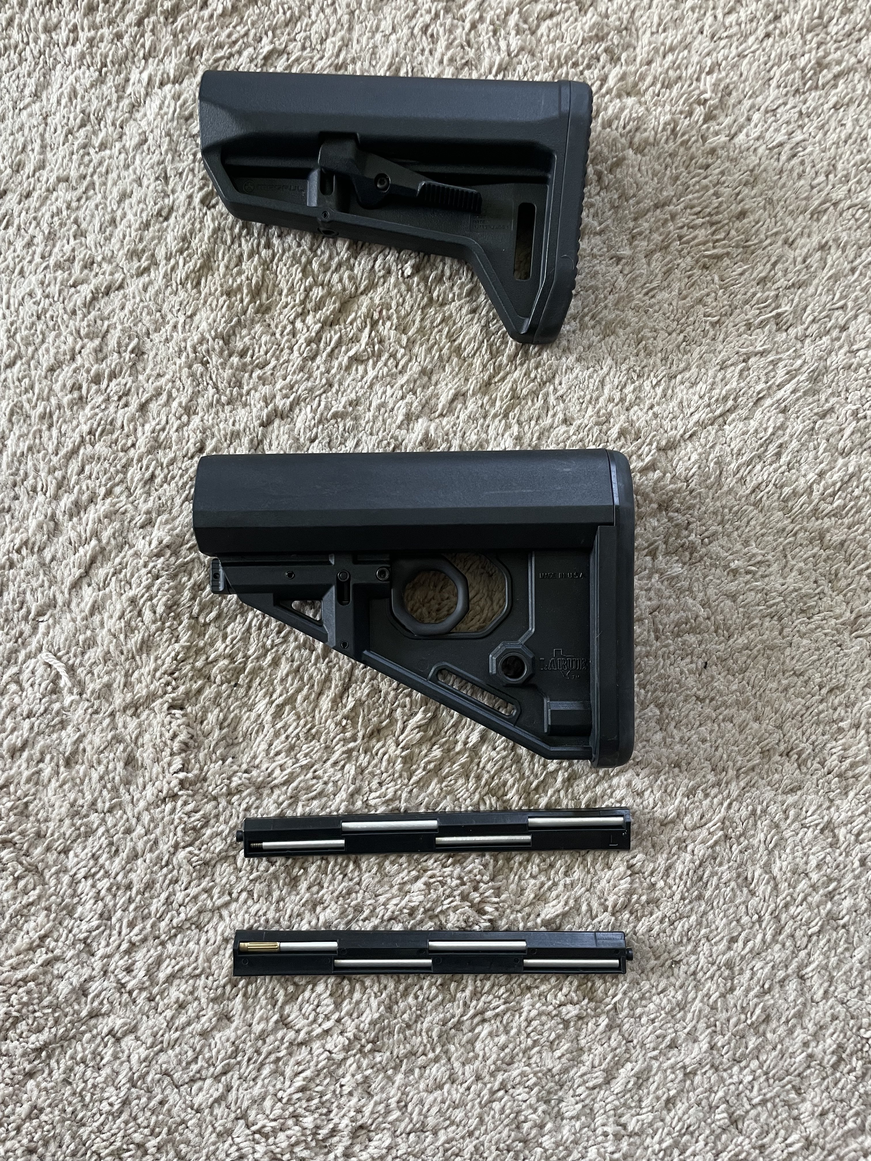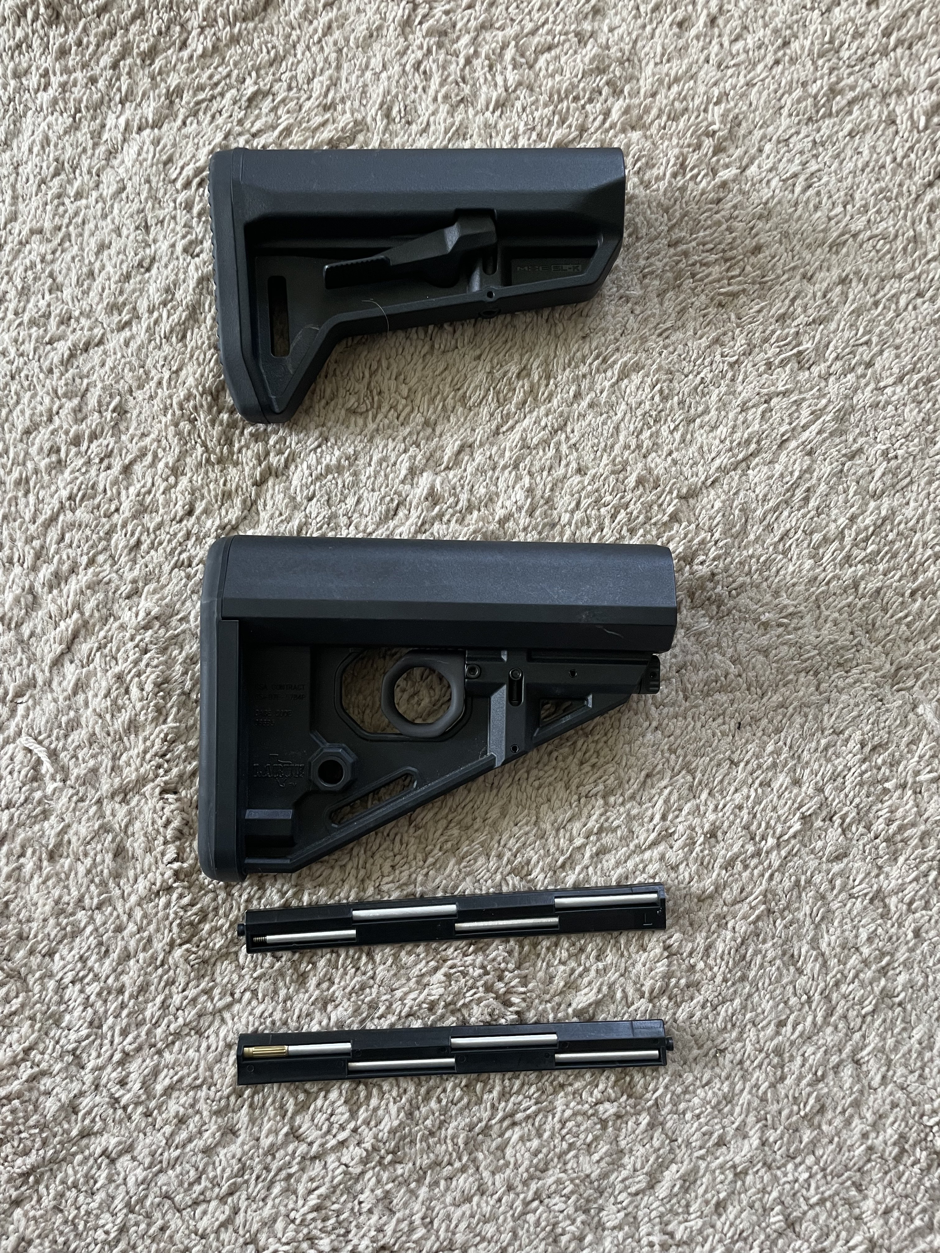 Selling a few AR15 stocks that I am not currently using. One is a Larue RAT adjustable with cleaning rod included that’s stored internally SOLD. The other is a Magpul SL-k adjustable. Both are black and in good shape. Hardly any use seen. Asking $OLD for Larue and $30 for Magpul to lower 48. Please PM if interested. I can take most common forms for payment. Thanks