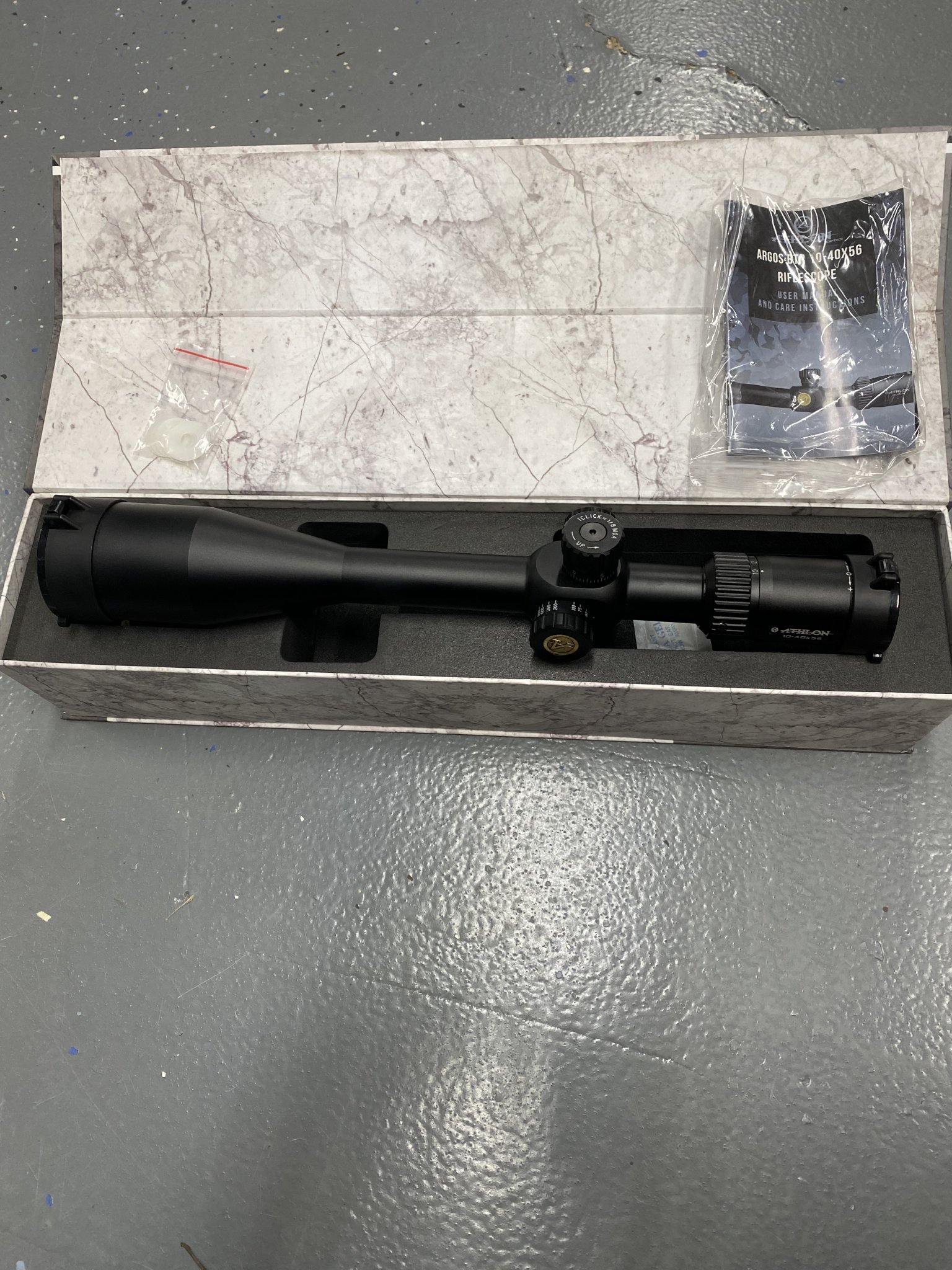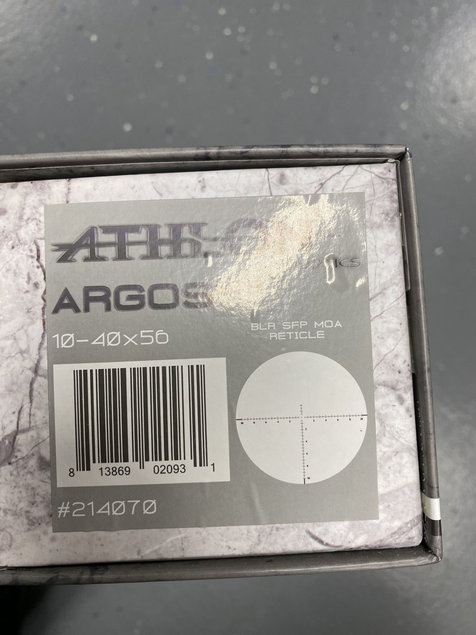 Athlon Argos 10-40x56.30mm tube #214070,BLR moa floating dot recticle Second focal plane,NON illuminated.parallax 15yds-infinity,was on a 22lr for a few months than sat in safe.NO ring mark,no scratches or marks,looks like new,1/8 moa clicks.comes in original box,manual,includes factory flip up caps