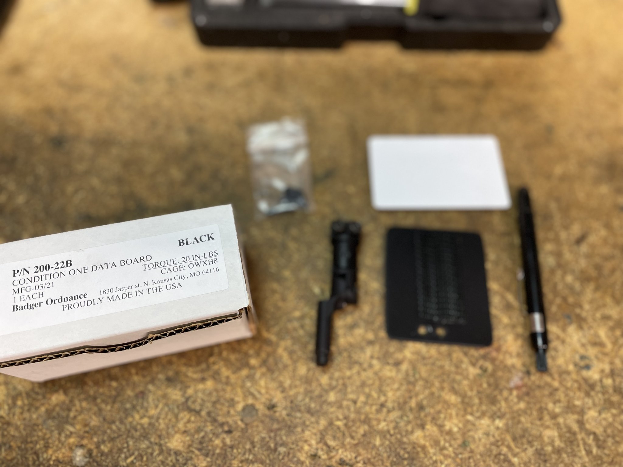 Badger Ordnance Condition One Data Board. This attaches to Condition One mounts and is a collaboration between them and Hawk Hill. This was installed but never used in the field. Comes with everything a new one does.
