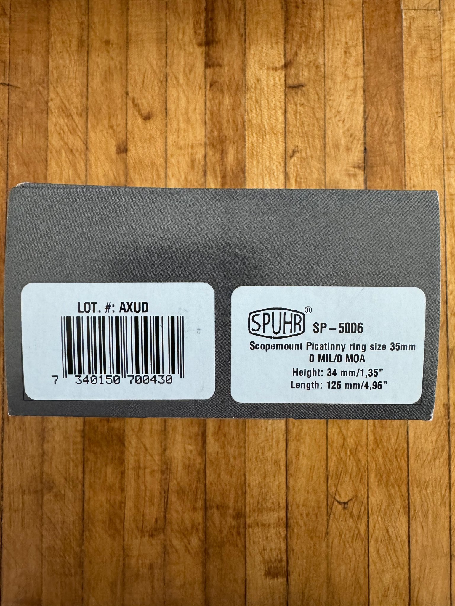 SPUHR mount w/ box and papers, shim, extra screws, like-new condition (white markings can be easily removed) - $