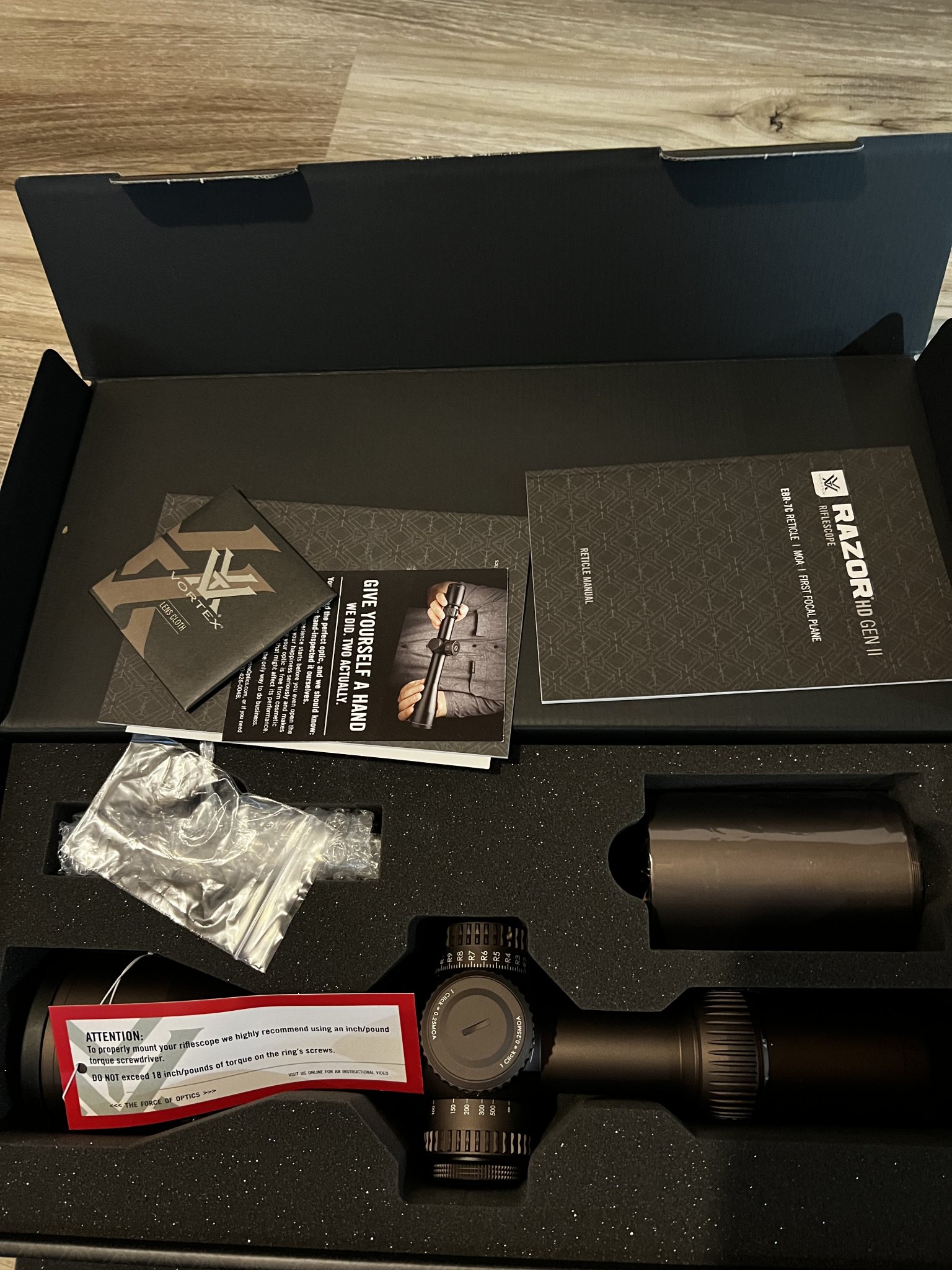 Hey guys I have up for sale a BNIB never mounted used or taken out of the package razor scope. Title says it all looking to get $2200 shipped for the bundle. Not looking to part out but feel free to send me a reasonable offer. Willing to do a call before hand and whatnot for proof of product.