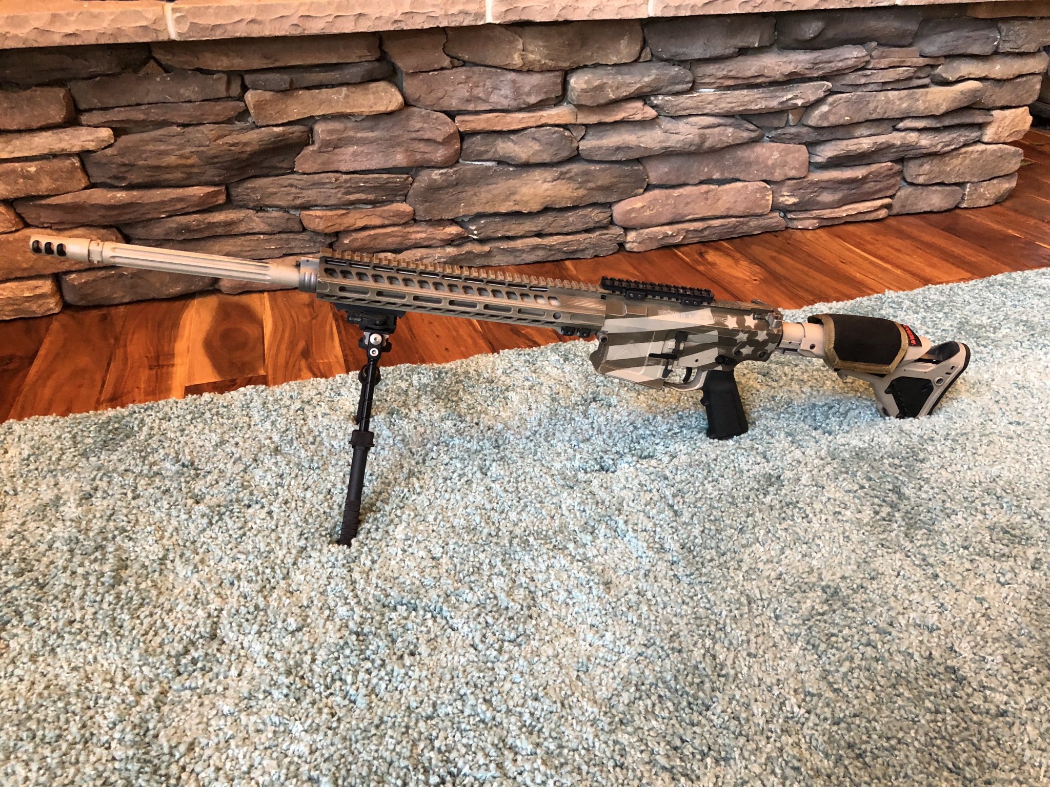 As you can see, it's a solid build. The rifle has been transported to and from the range, so there are a few normal wear and tear marks, With the freedom cerakote job I had done they blend right in and give that distinguished look. The only notable issue is on the edge of the ejection port which has some wear from brass hitting it. Otherwise it's a dream to shoot and own.