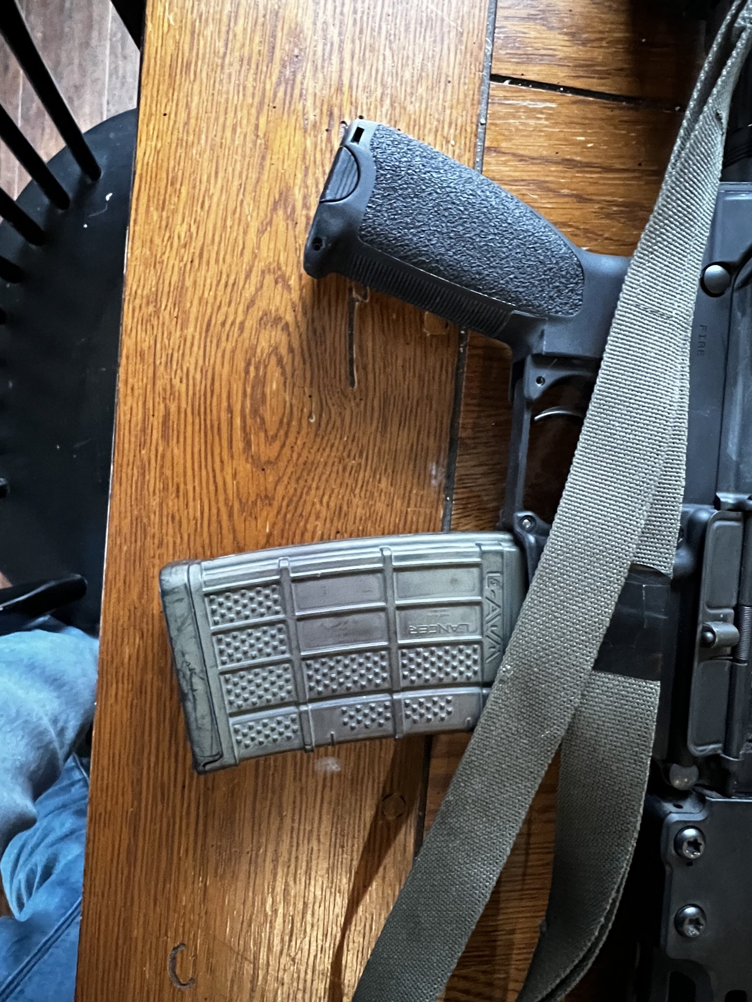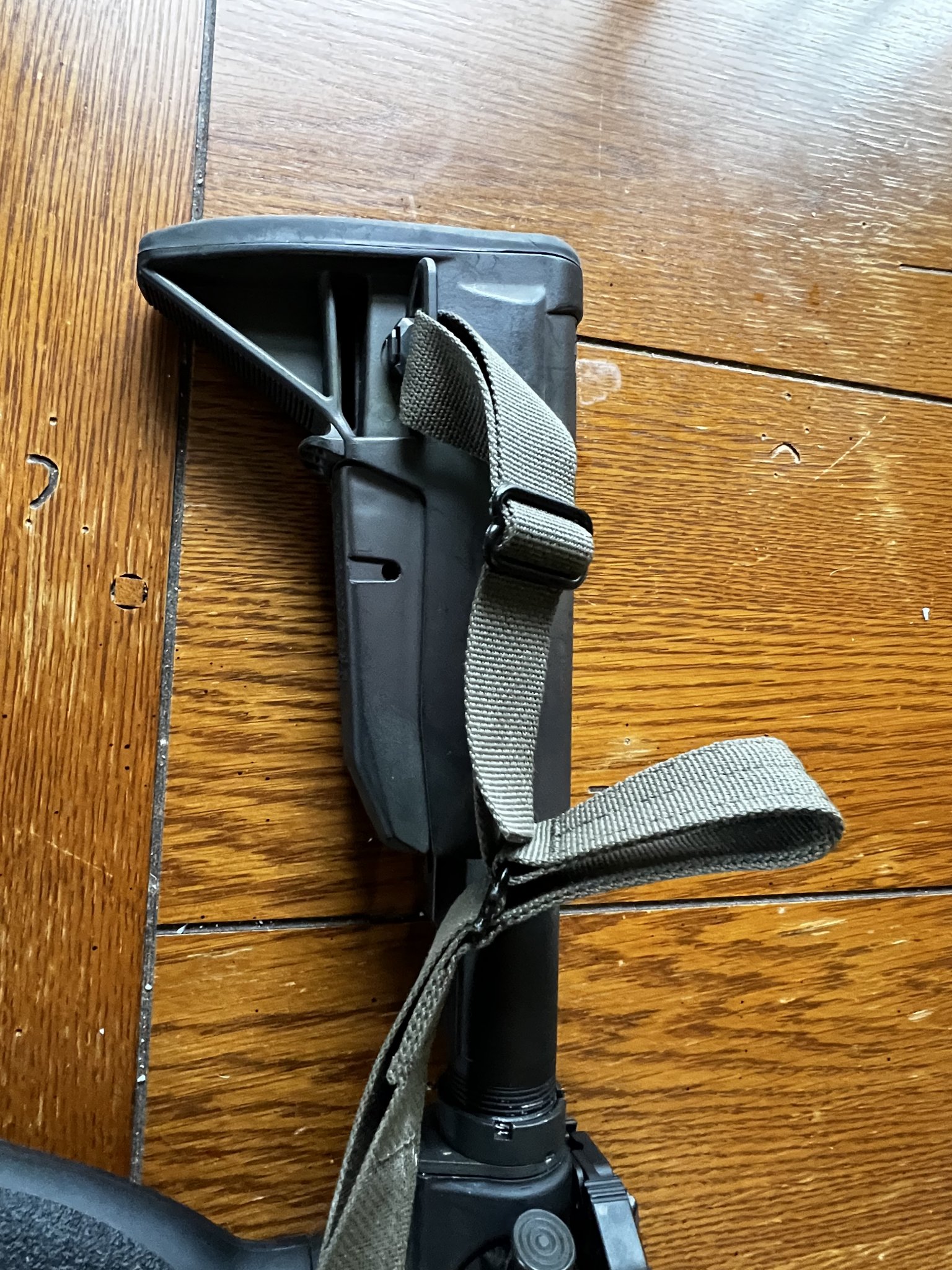 Colt 6920 Lower Receiver, Geissele SSA-E or S3G trigger (can’t remember), Milspec Safety, BCM gunfighter pistol grip, BCM Stock, HSP Slim Sling