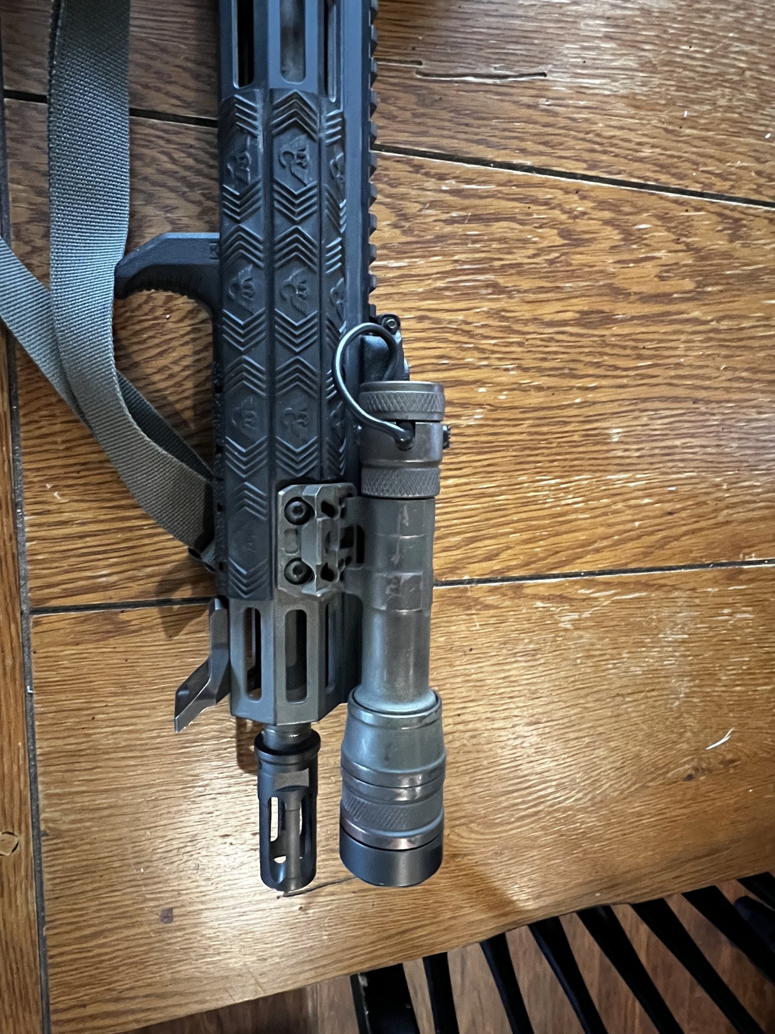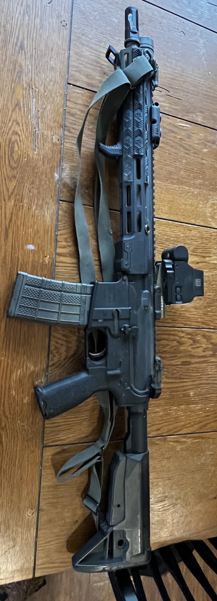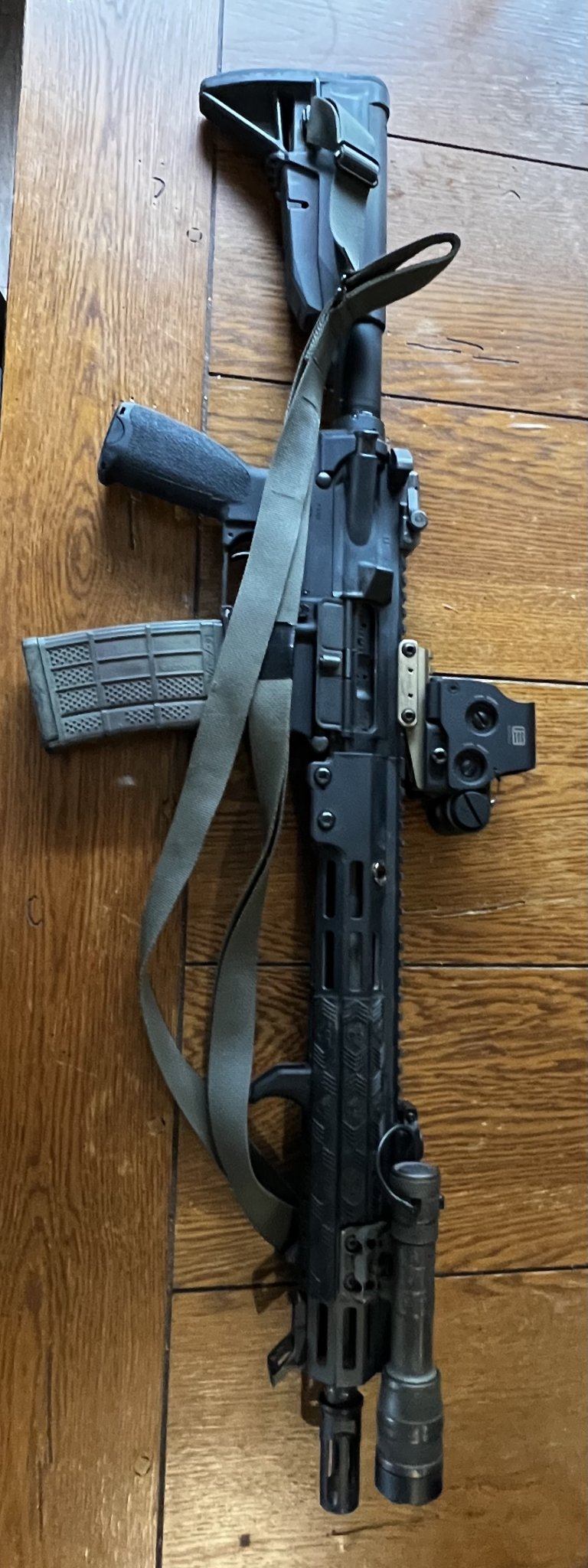 Geissele Super Duty 14.5”, Nanoweapon BCG, Magpul MBUS steel sights, Eotech EXPS2-0 with Unity Riser, Cloud REIN 2.0, Wilson Combat Rubber MLOK Panels, KAC Barriercade, Magpul Handstop